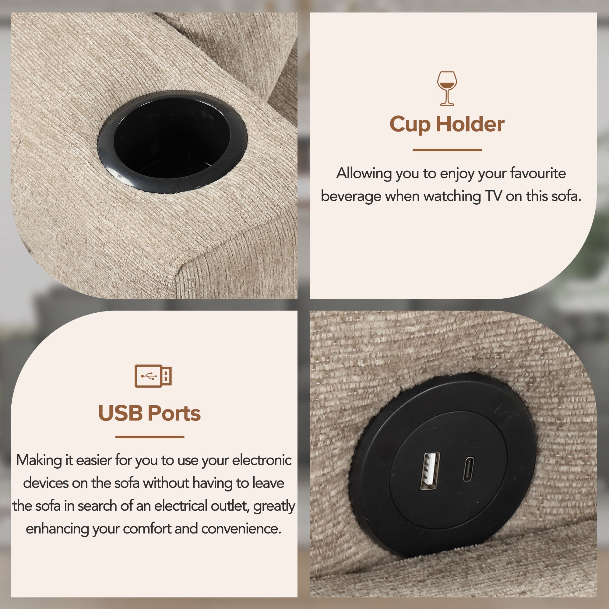 Made for Convenience - Equipped with two built-in USB ports for charging devices and a convenient cup holder, this sofa combines comfort with modern convenience for a more cozy lounging experience.