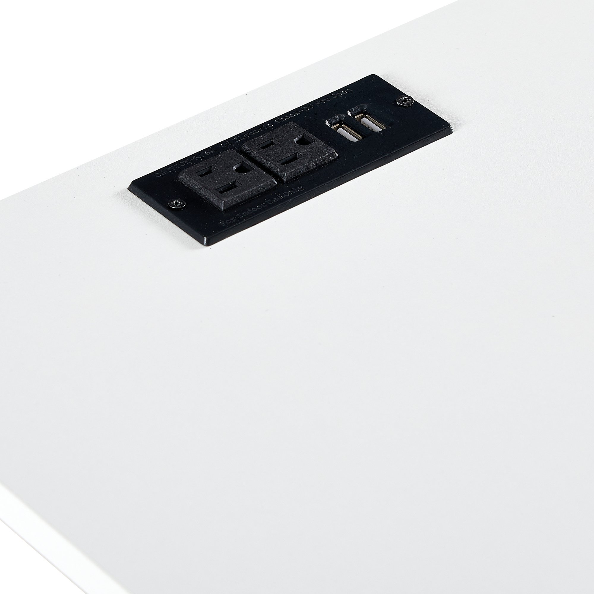> 15.75" Rattan End table with Power Outlet & USB Ports , Modern nightstand with drawer and solid wood legs, side table for living room, bedroom, white