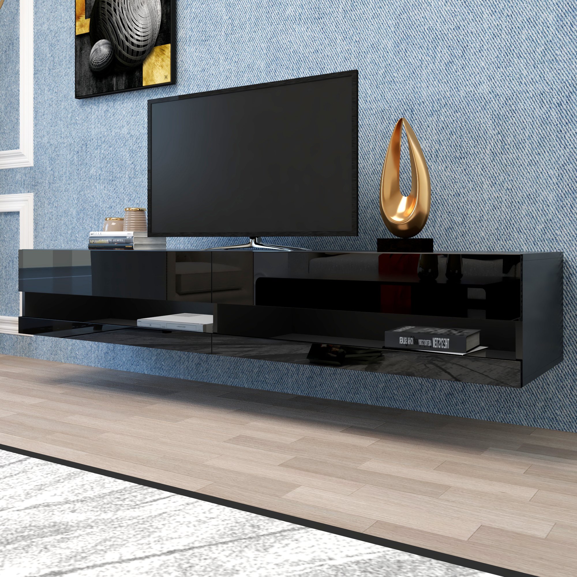 Floating TV Stands good for up to 80" TV; Floating Entertainment Center Walls; Wall Mount TV Stands; Wall Mounted Media Consoles & Hanging TV ConsolesHigh gloss fronts with matt body - available in different color variationsSize/Weight W 70.9" / D 16.5" / H 11.8" / 63 lb.load-bearing : 50KG