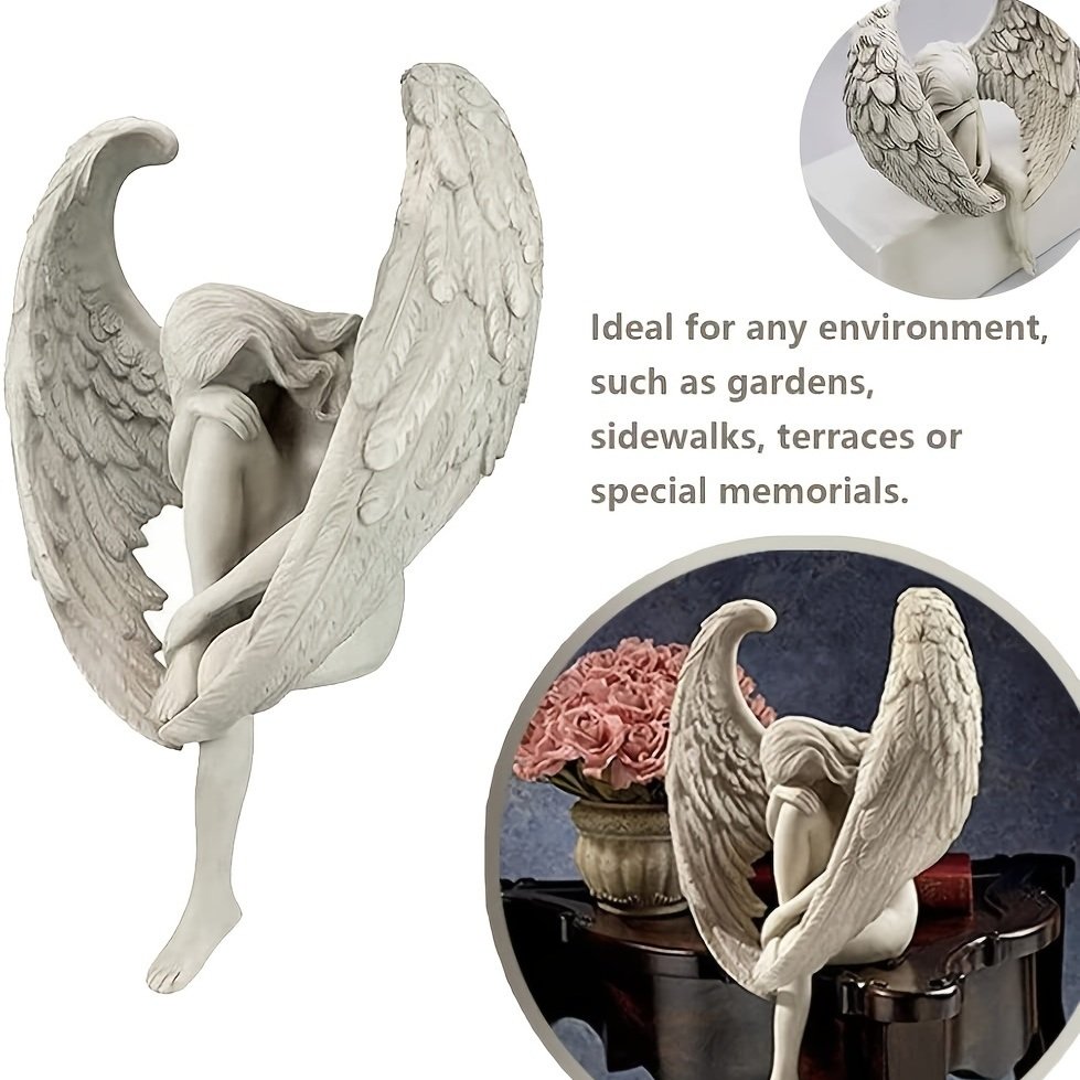 Home > 1pcs Sorrow Angel Statue Crafts; Pure White Love Angle With Wings Sculpture Ornaments; For Home Decor Bedroom Office Garden Tabletop