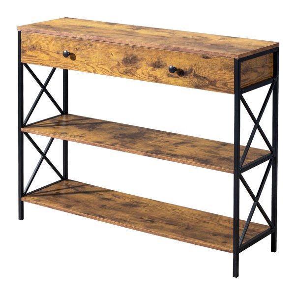 3 Tier Console Table for Entryway with Drawer and 2 Open Storage; Industrial Sofa Table with Storage for Living Room; Narrow Console Table with X Desi