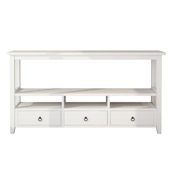 Home > 3 Tier Vintage Solid Console Table with 3 Drawers and Shelves; Industrial Console Table Coffee Table for Living Room Entry Bedroom White Color