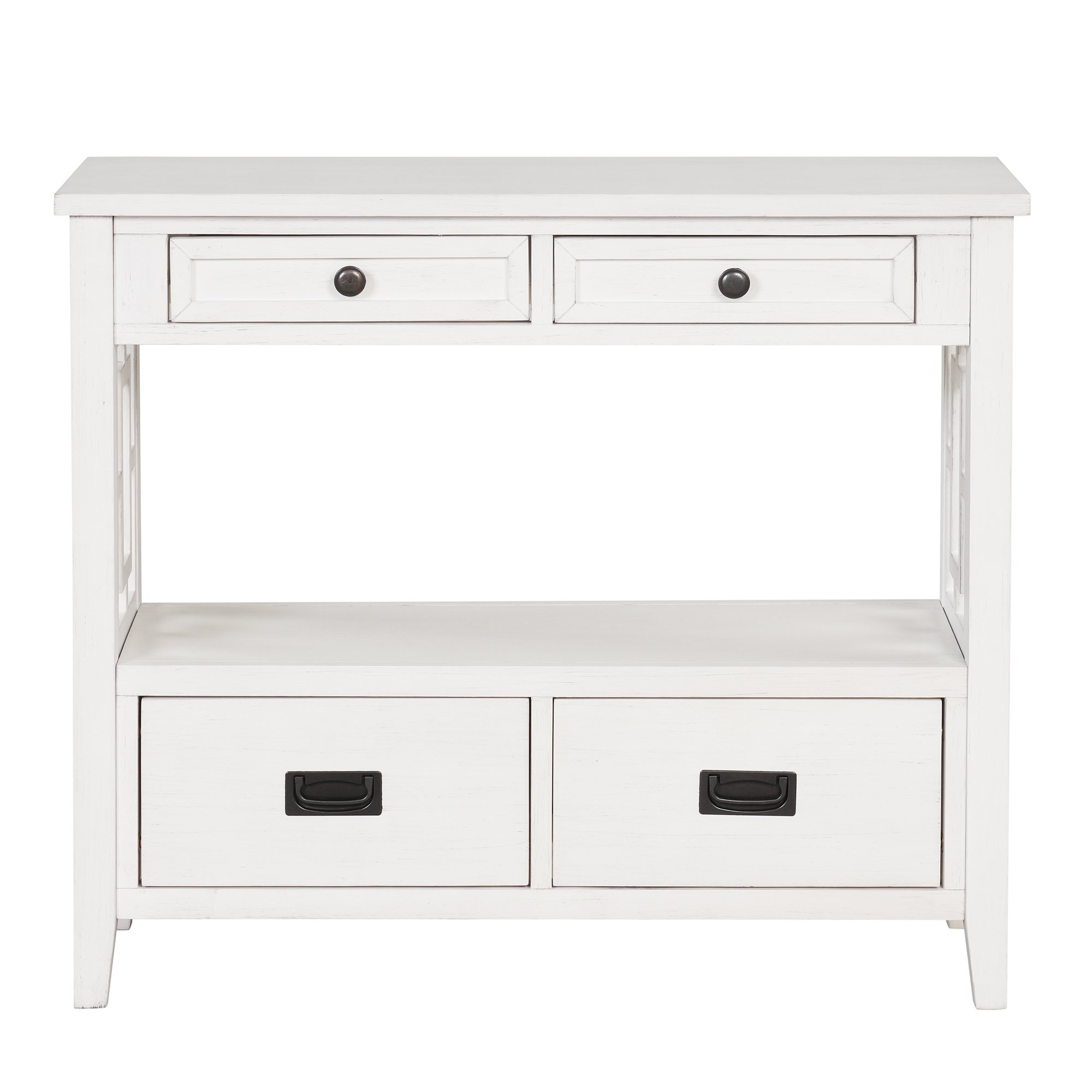 36'' Farmhouse Pine Wood Console Table Entry Sofa Table with 4 Drawers & 1 Storage Shelf for Entryway Living Room Bedroom Hallway Kitchen (Antique Whi