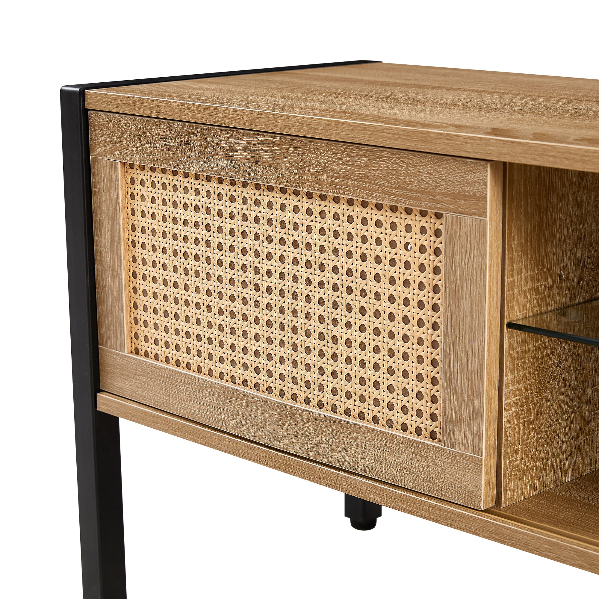 10.Exquisite appearance:Rattan woven tv stand, with a fashionable and unique appearance,The rattan woven material is even and smooth, making it unlikely to cause harm.