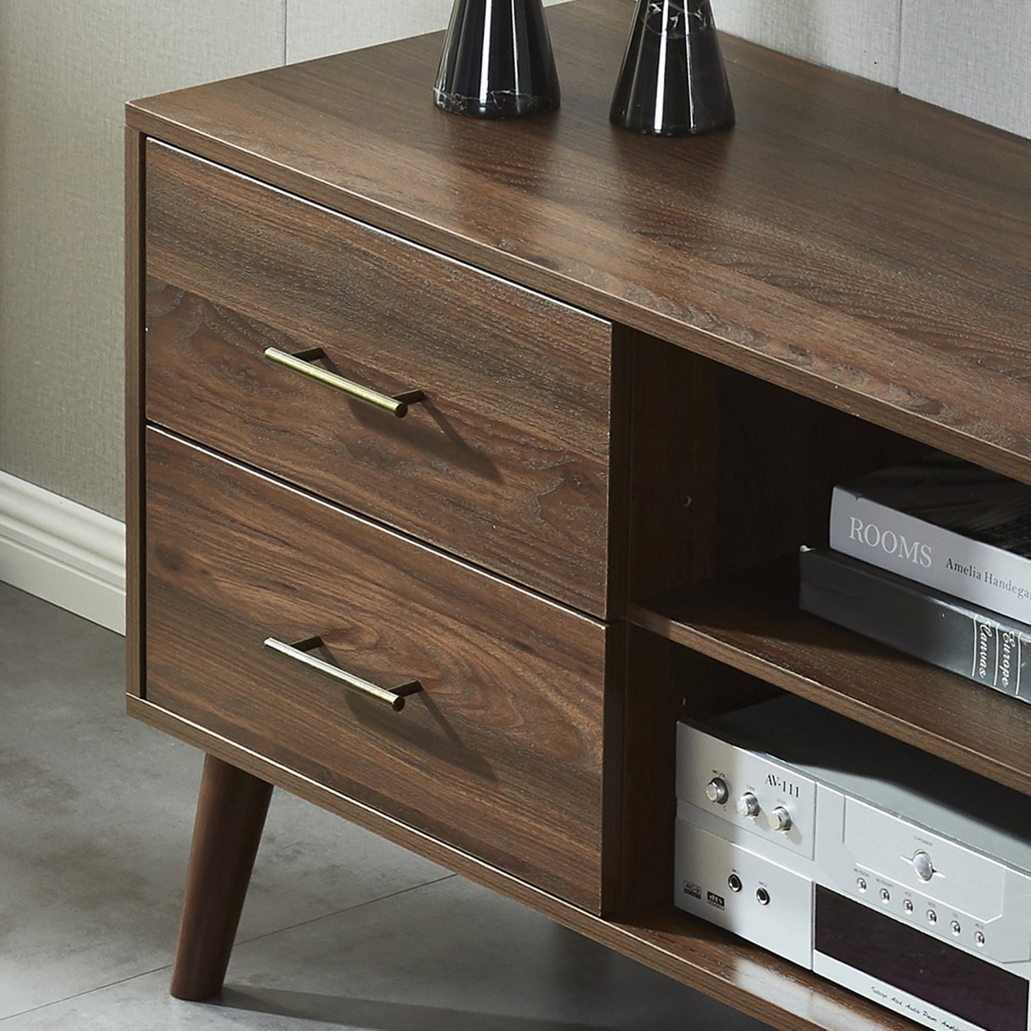 Vintage Walnut TV StandThe Vintage Walnut TV Stand is carefully crafted with high-quality engineer wood, providing a sturdy and durable base for your home needs. Our timeless design is finished with a beautiful vintage walnut wood grain, adding a classic and sophisticated look to your living space.