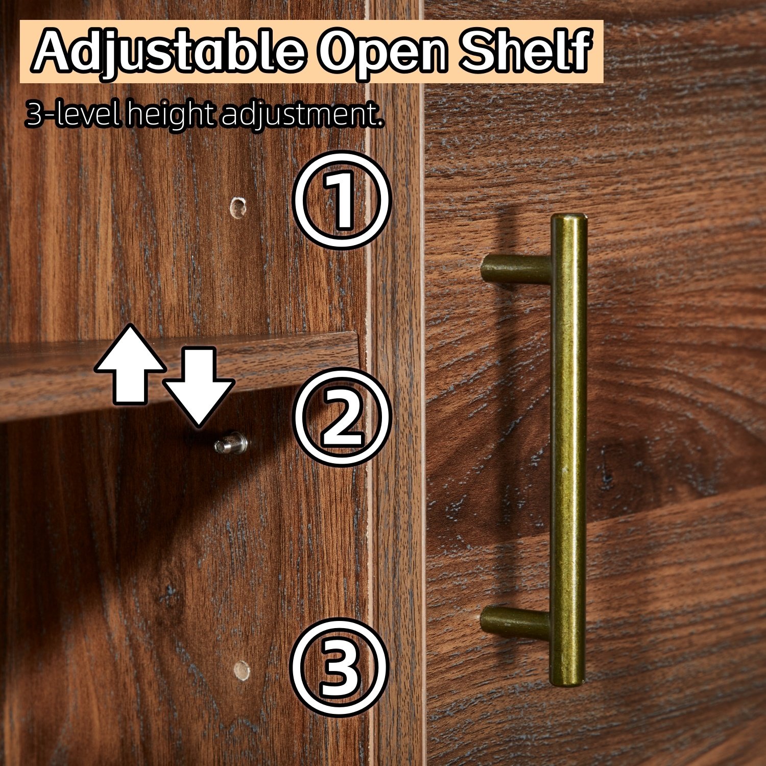 Adjustable shelvesAdjustable shelves are adjustable for 3-level heights, a closed cabinet hide your sundries.