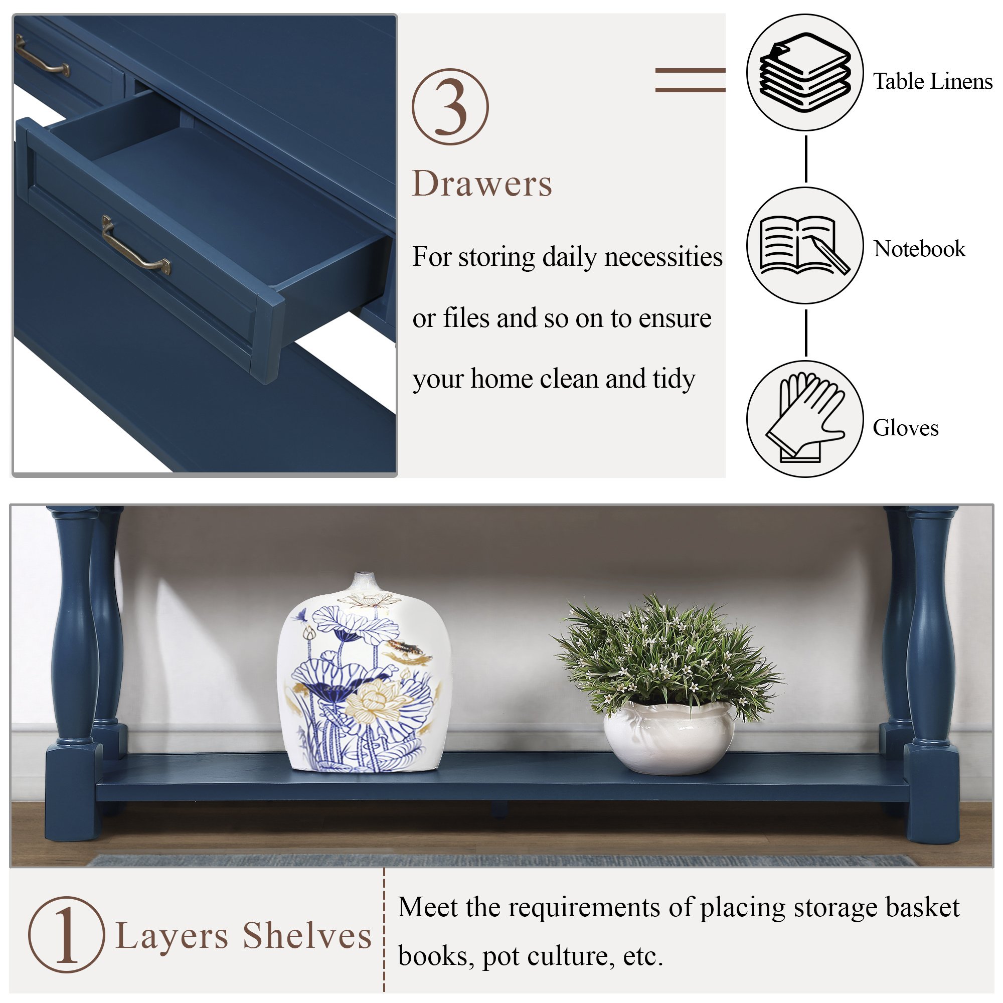 [Multi Functional Storage Space] The sofa table features with total 3 functional drawers and a fixed lower shelf and long enough tabletop which provide enough storage space. This is a good place to put your daily necessities.