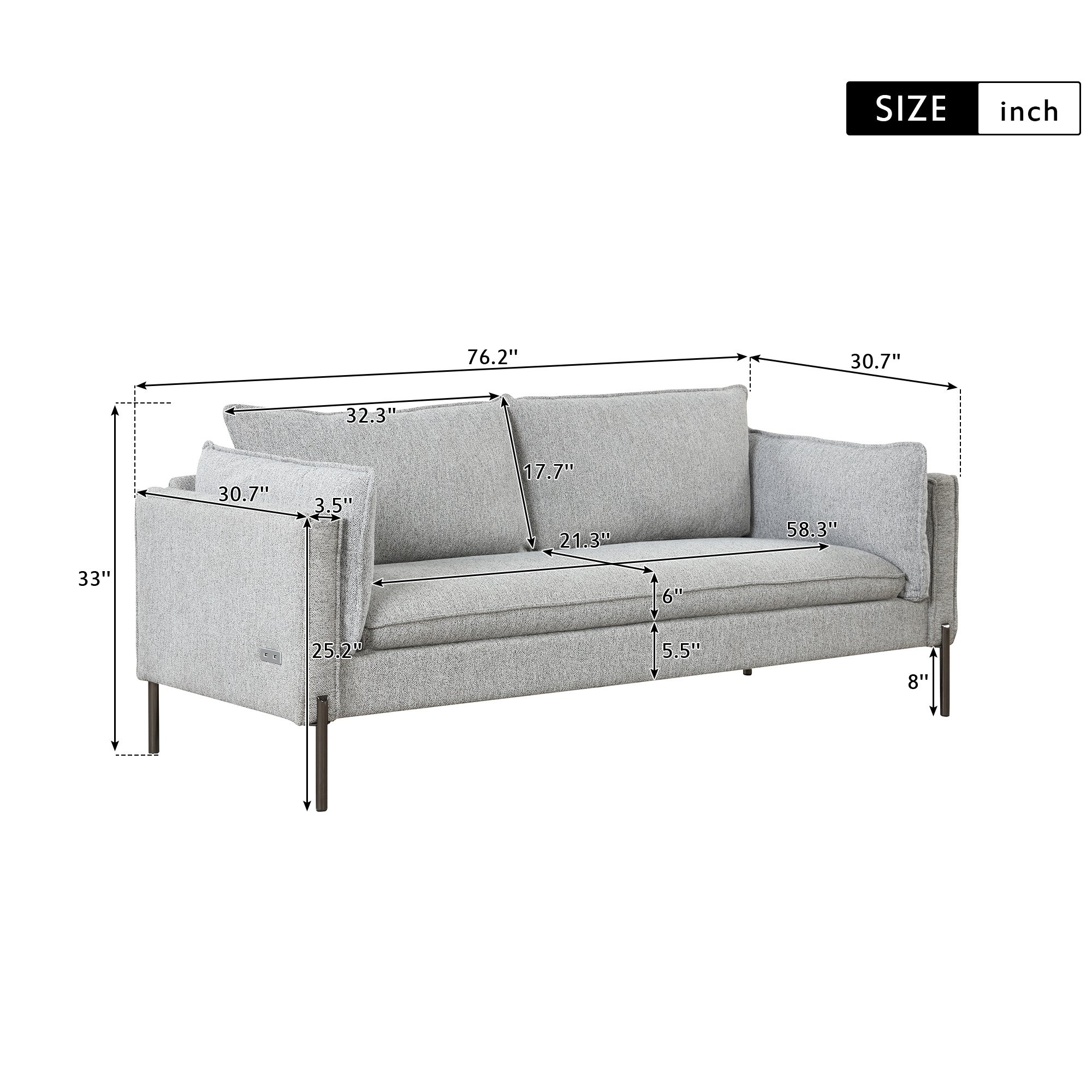 76.2" Modern Style 3 Seat Sofa Linen Fabric Upholstered Couch Furniture 3-Seats Couch for Different Spaces,Living Room,Apartment