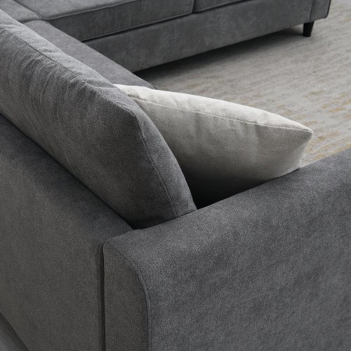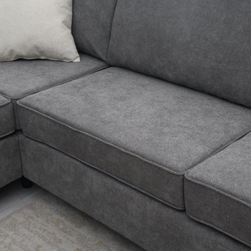 For a living room with style, comfort and spacious seating, the 3-piece sectional sofa will satisfy your needs. This sectional features gray upholstery that's both versatile and trendy. And, when it comes to comfort, delivers with its huge seating area and extra accent pillows. With all these great features, you're in for a well-balanced room with character.