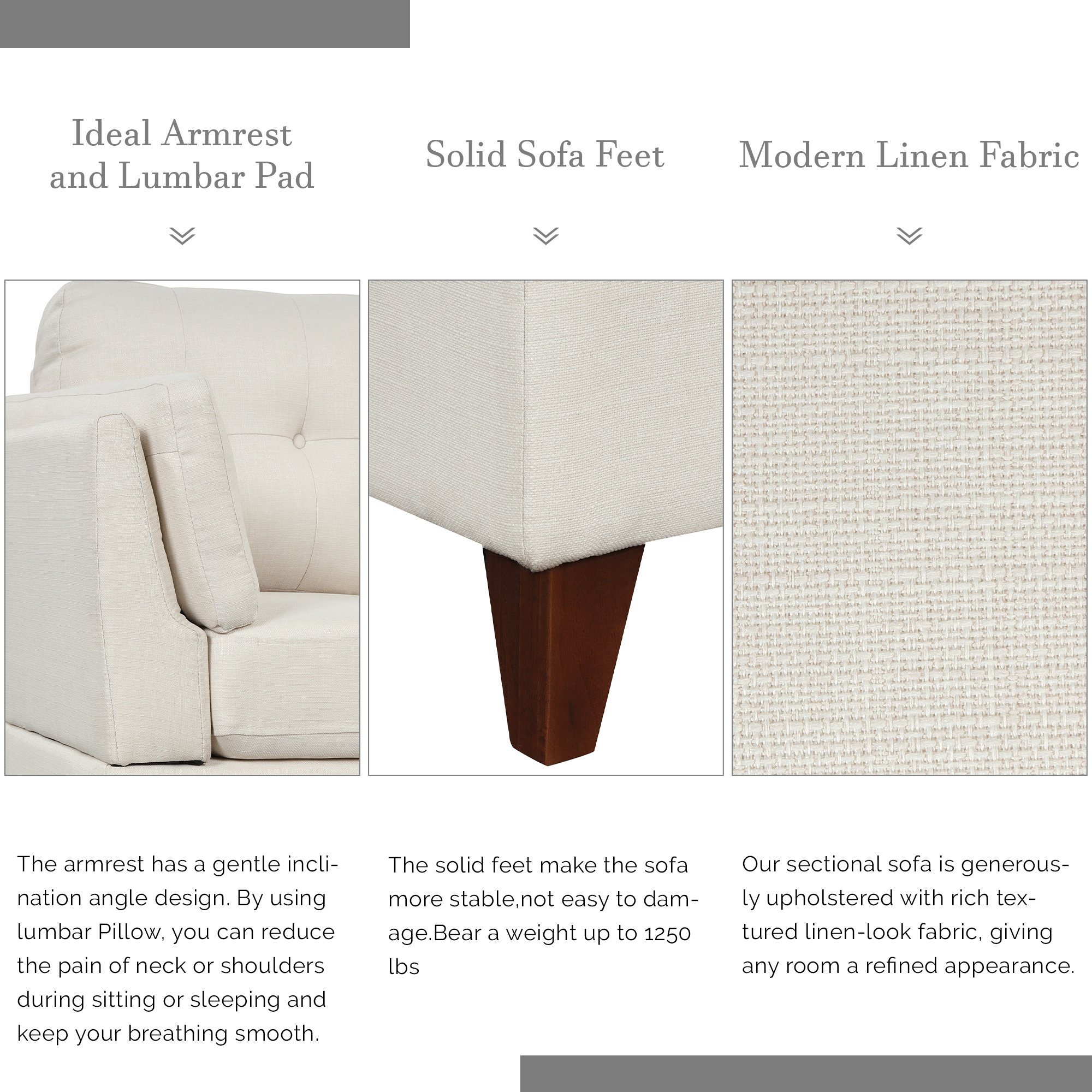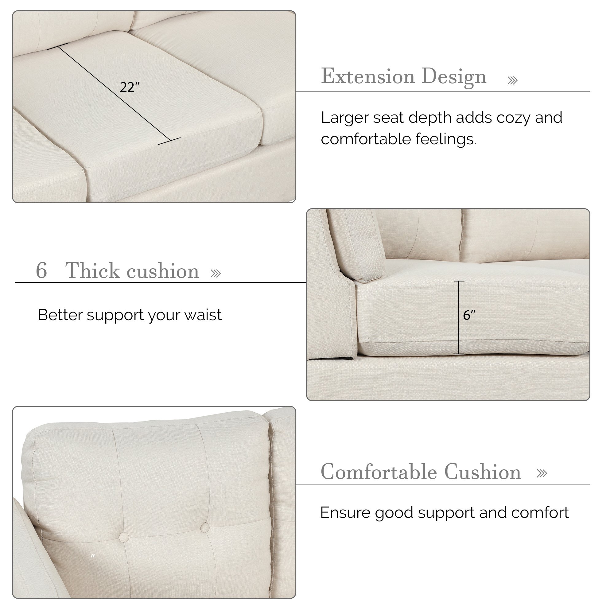 Superior Quality & Softy Cushion - The seat cushions of the sectional sofa are made of high resilience foam, have better resilience and softness.The back cushion is filled cotton, provide soft feeling when you lie on it.