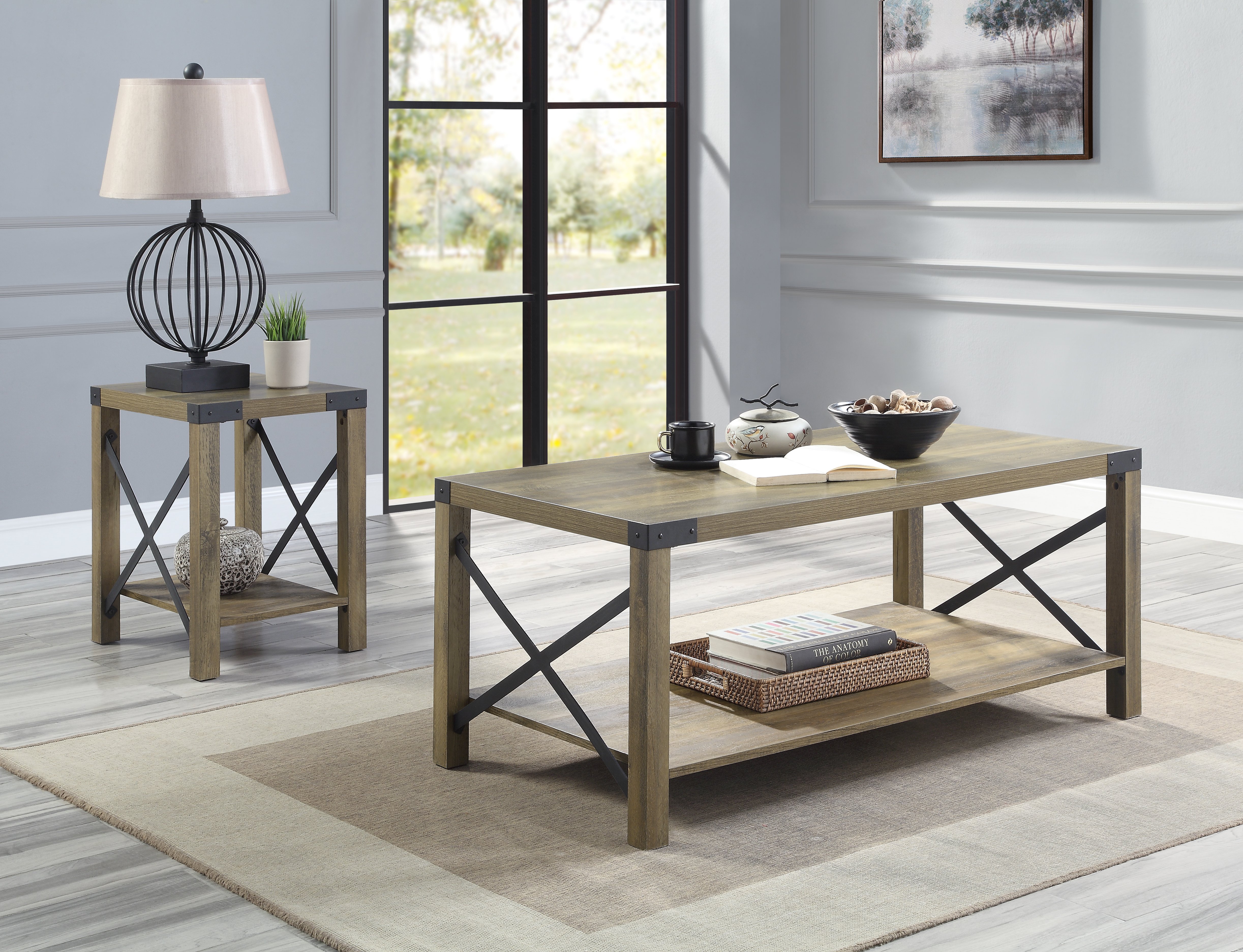 ACME Abiram Coffee Table in Rustic Oak Finish LV01001