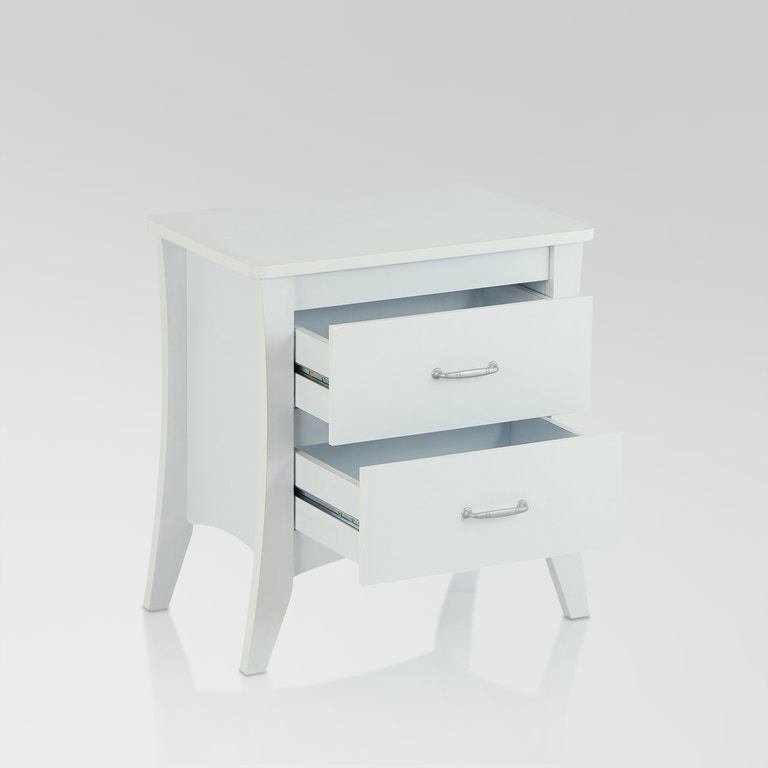 -The Babb nightstand in white finish is perfect for storing the odds and ends of your life out of sight. This space-saving bedside table gives you two full-size drawers, matching with the beautiful brushed handles