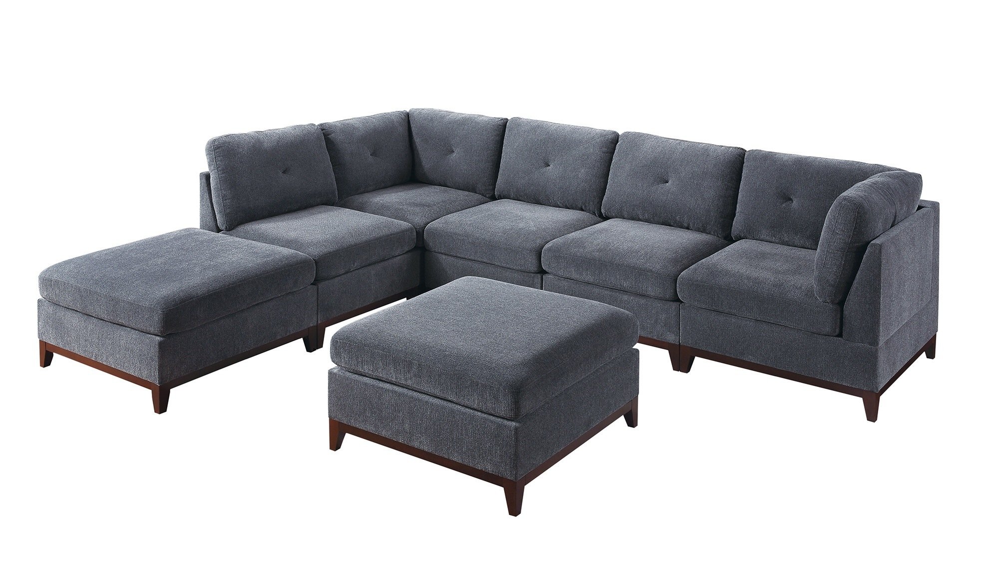 Home > Ash Grey Chenille Fabric Modular Sectional 7pc Set Living Room Furniture U-Sectional Couch 2x Corner Wedge 3x Armless Chairs and 2x Ottomans Tufted Ba