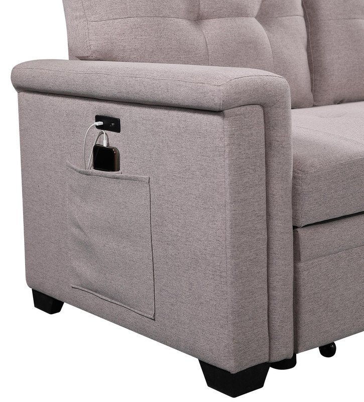 Ashlyn Light Gray Reversible Sleeper Sectional Sofa with Storage Chaise, USB Charging Ports and Pocket