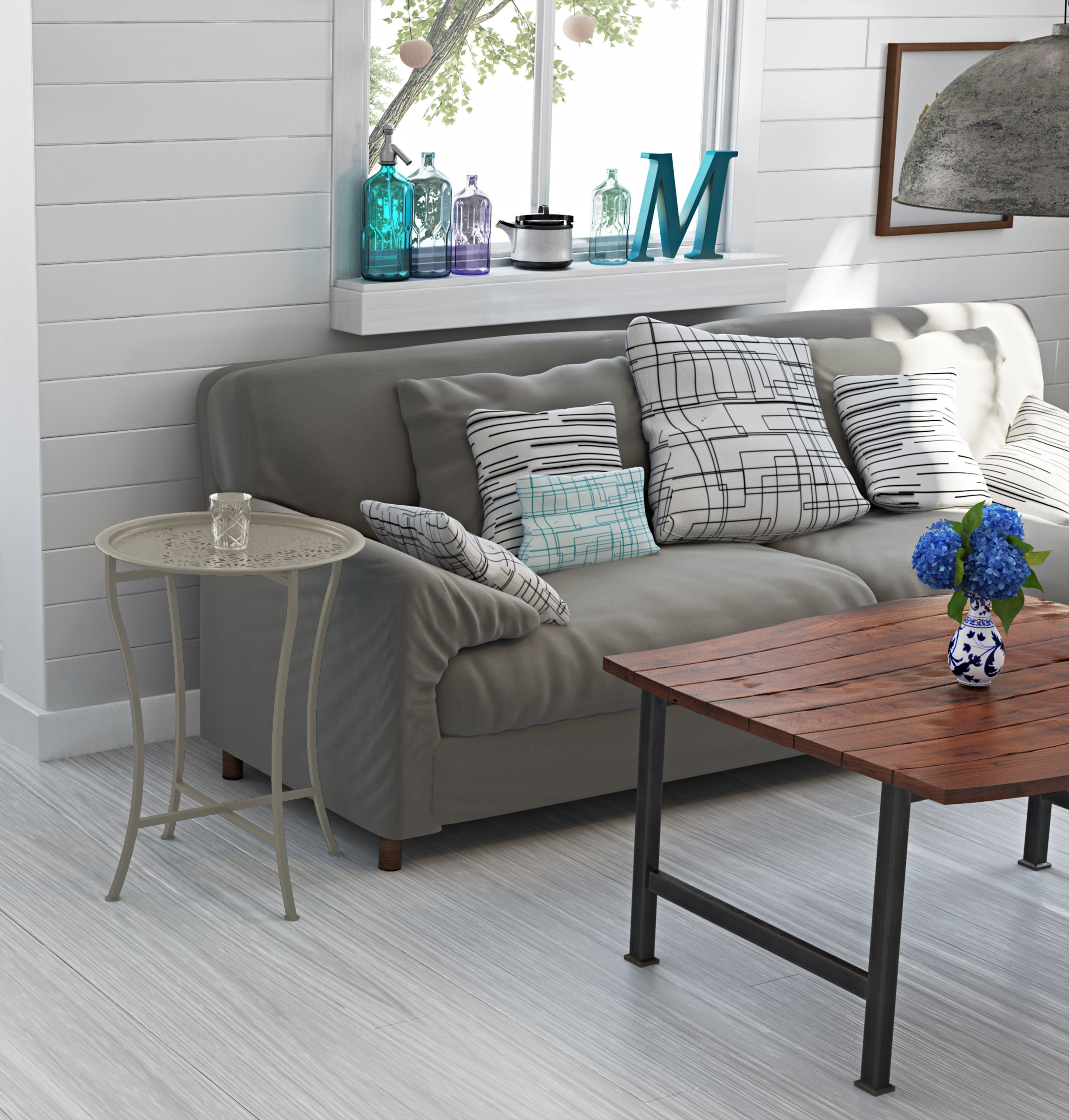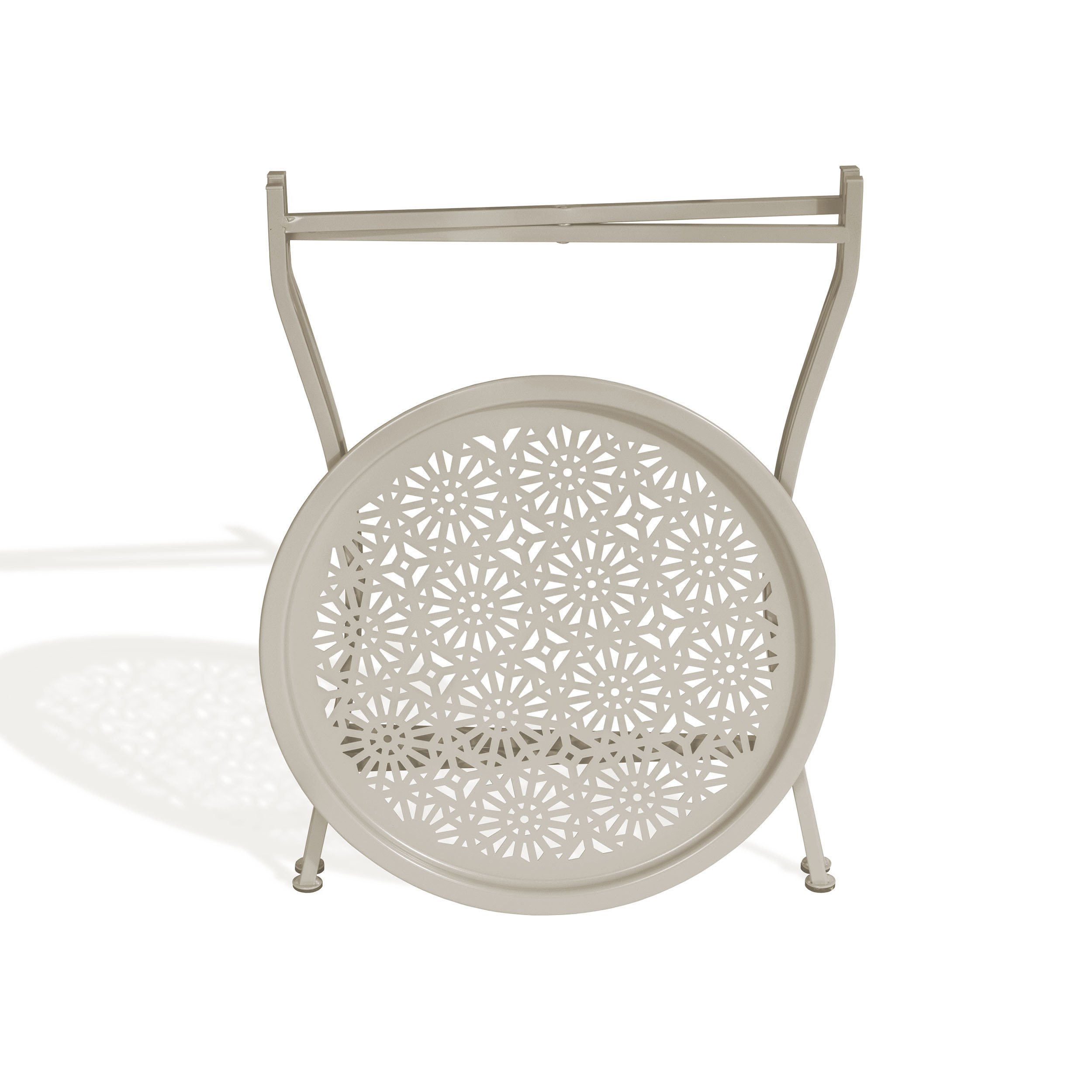 Your home can't be all clean lines and restrained minimalism all the time. How about a little decorative flair and freshness? The pretty, patterned Daisy Tray Side Table in Stone brings you exactly that. The tabletop lifts off to serve as a tray, and its powder-coated metal construction is safe for inside and out. Fold it up for small-space storage when you're done, and it'll always be ready for friends and fun.