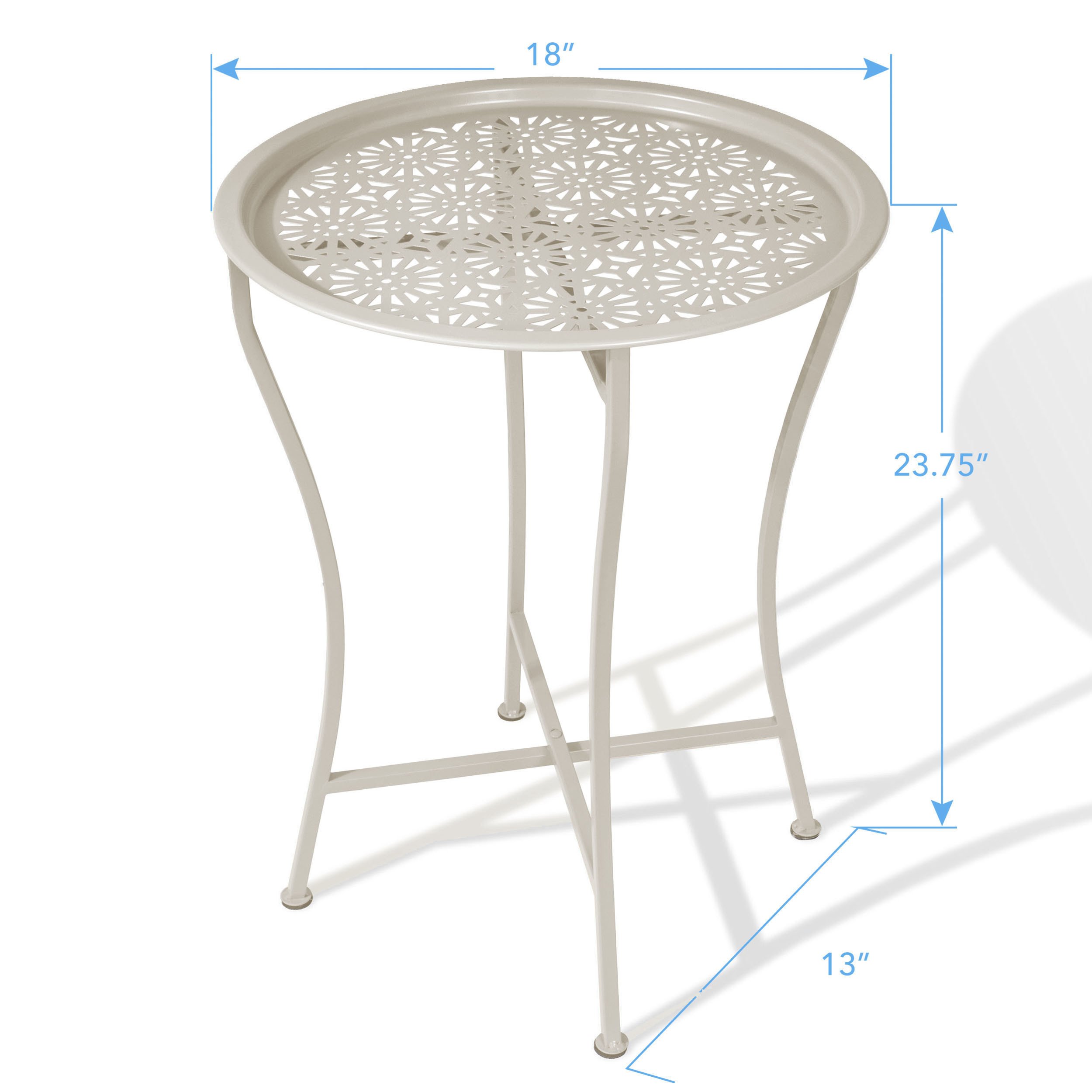 Atlantic Daisy Tray Side Table - Tabletop Lifts Off to Serve as a Tray, Powder-Coated Metal Construction, Safe for Inside and Out, Folds for Small-Spa