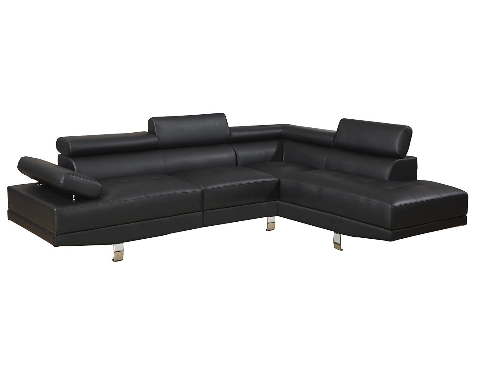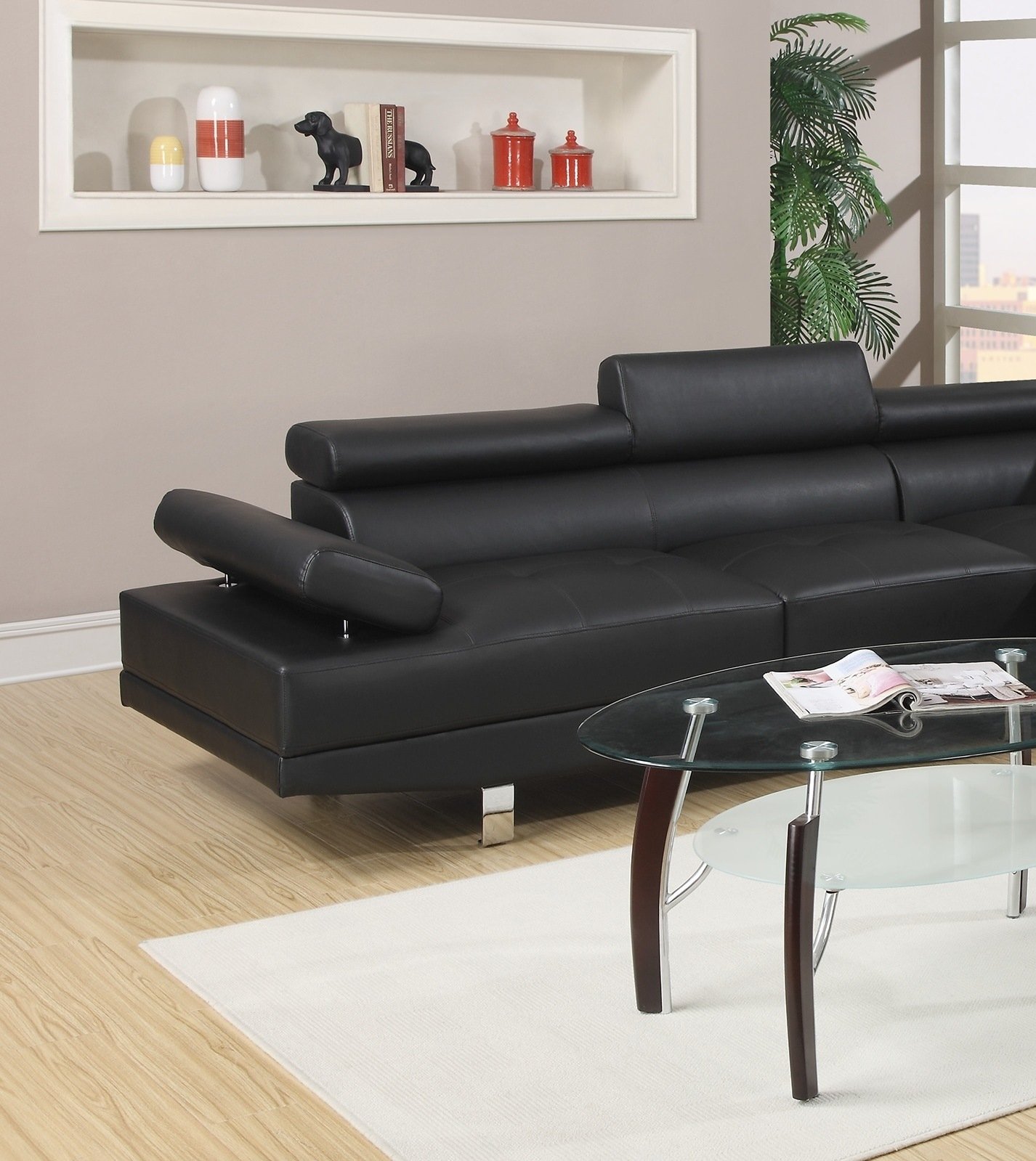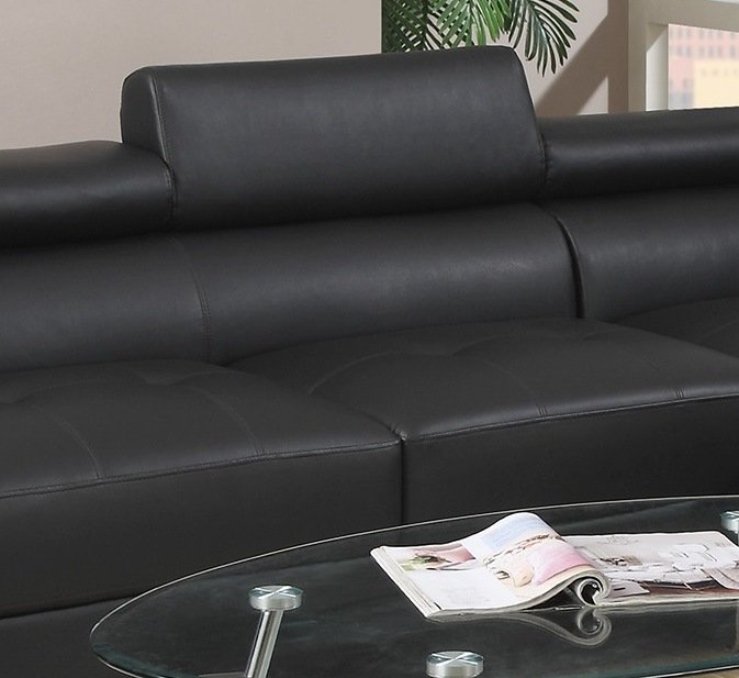 Black Color Sectional Living Room Furniture Faux Leather Adjustable Headrest Right Facing Chaise & Left Facing Sofa