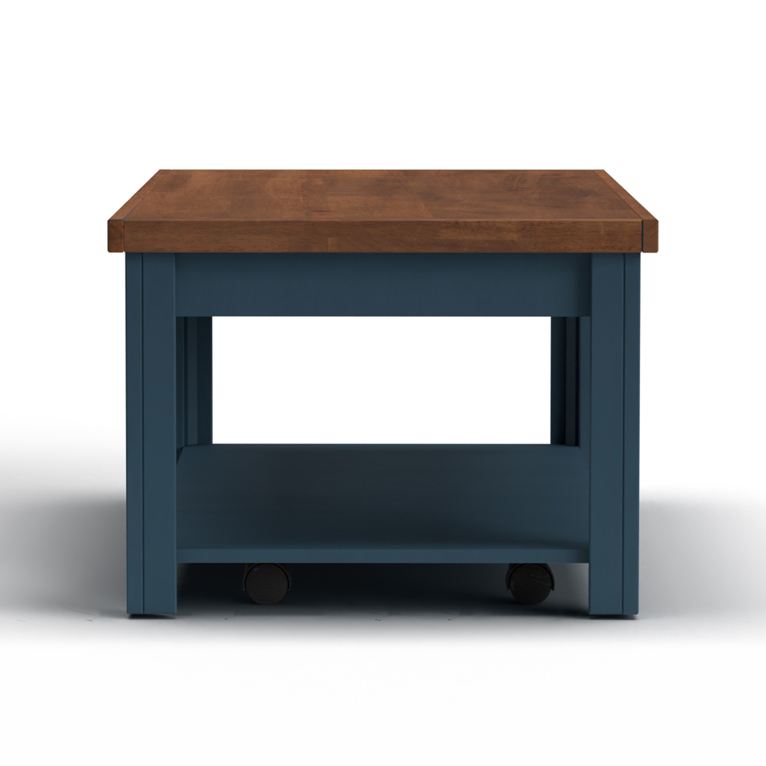 The Nantucket 48 inch Coffee Table delivers a flawless combination of modern farmhouse style and country simplicity. Beautifully crafted from Poplar Solids, Okoume Veneers and Knotty Alder, this cocktail table features a two-tone Blue Denim and Whiskey finish and will accent your upholstery beautifully. The vast table top and shelf below are ideal to showcase home décor accents while the five caster wheels on the base ensure quick and easy movement throughout your space. Fully assembled upon arrival, this piece from Bridgevine Home is ready to unbox and enjoy.