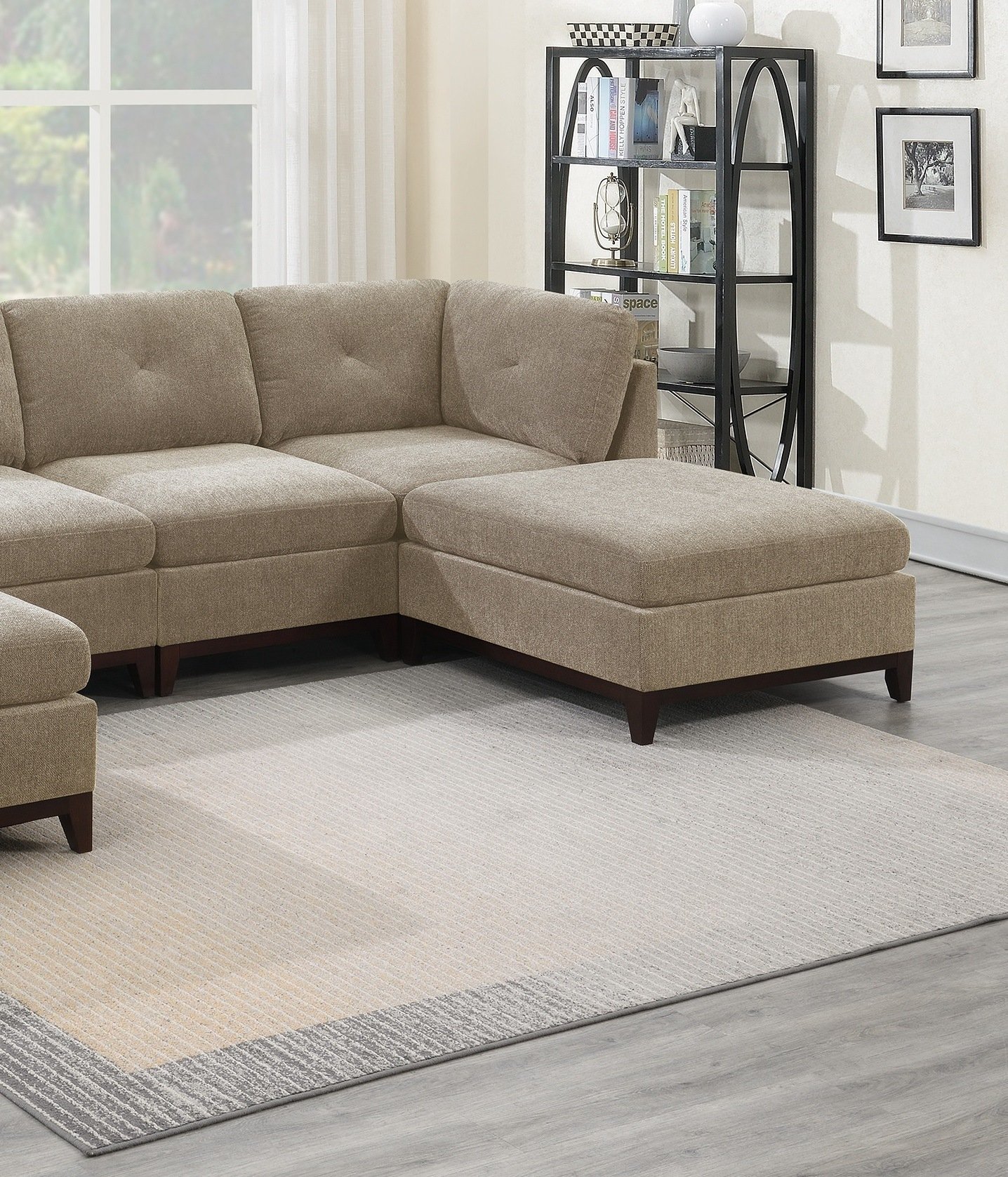 Camel Chenille Fabric Modular Sectional 6pc Set Living Room Furniture U-Sectional Couch 2x Corner Wedge 2x Armless Chairs and 2x Ottomans Tufted Back
