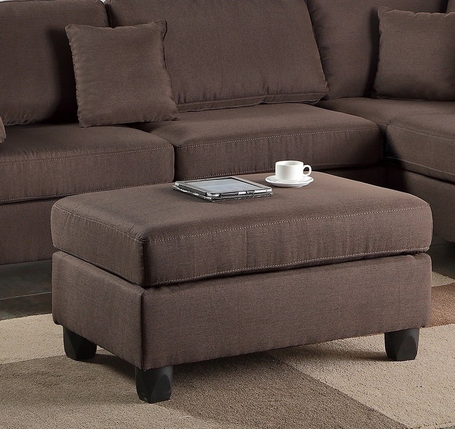 Chocolate Color 3pcs Sectional Living Room Furniture Reversible Chaise Sofa And Ottoman Polyfiber Linen Like Fabric Cushion Couch