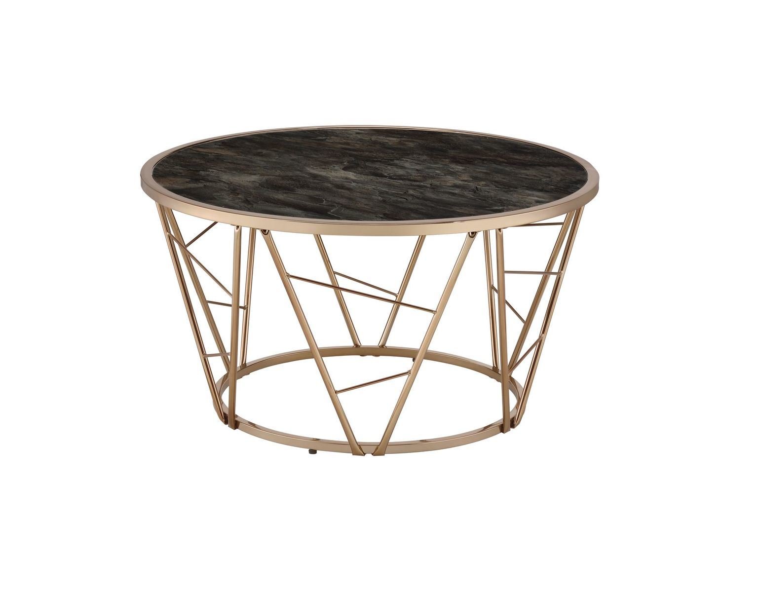 Home > Cicatrix Coffee Table; Faux Black Marble Glass & Champagne Finish YJ