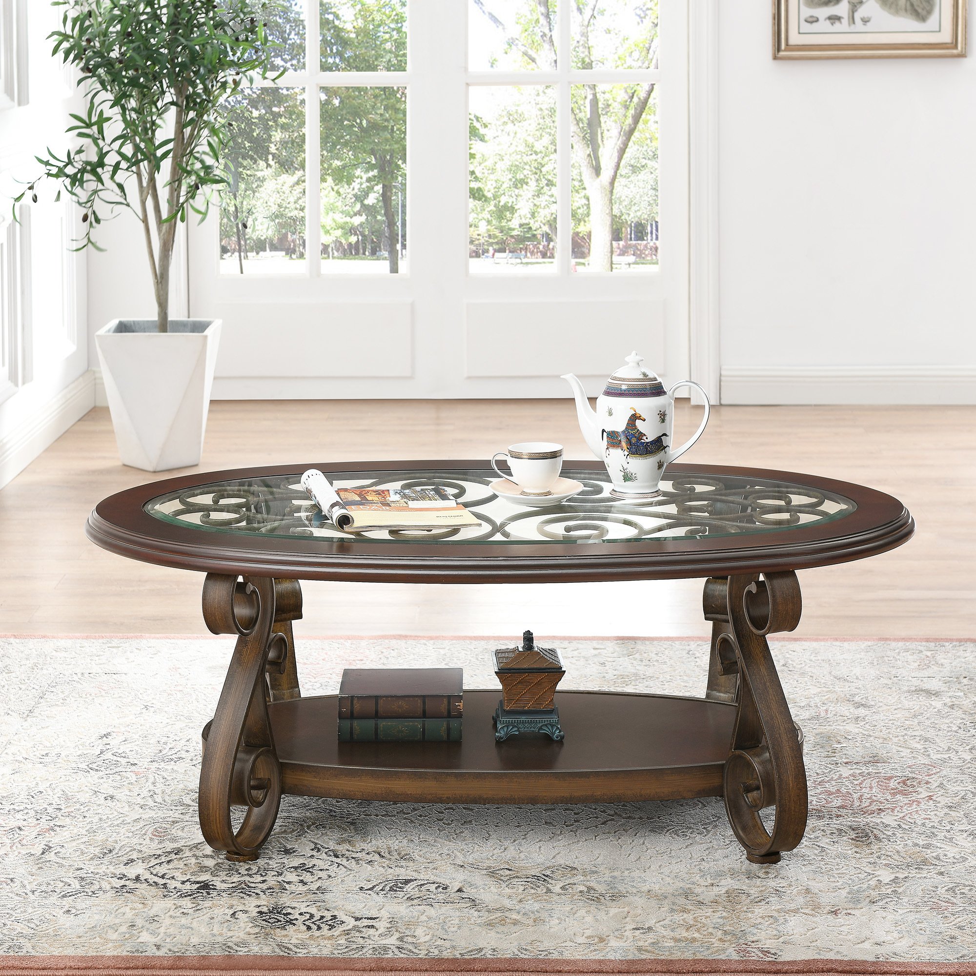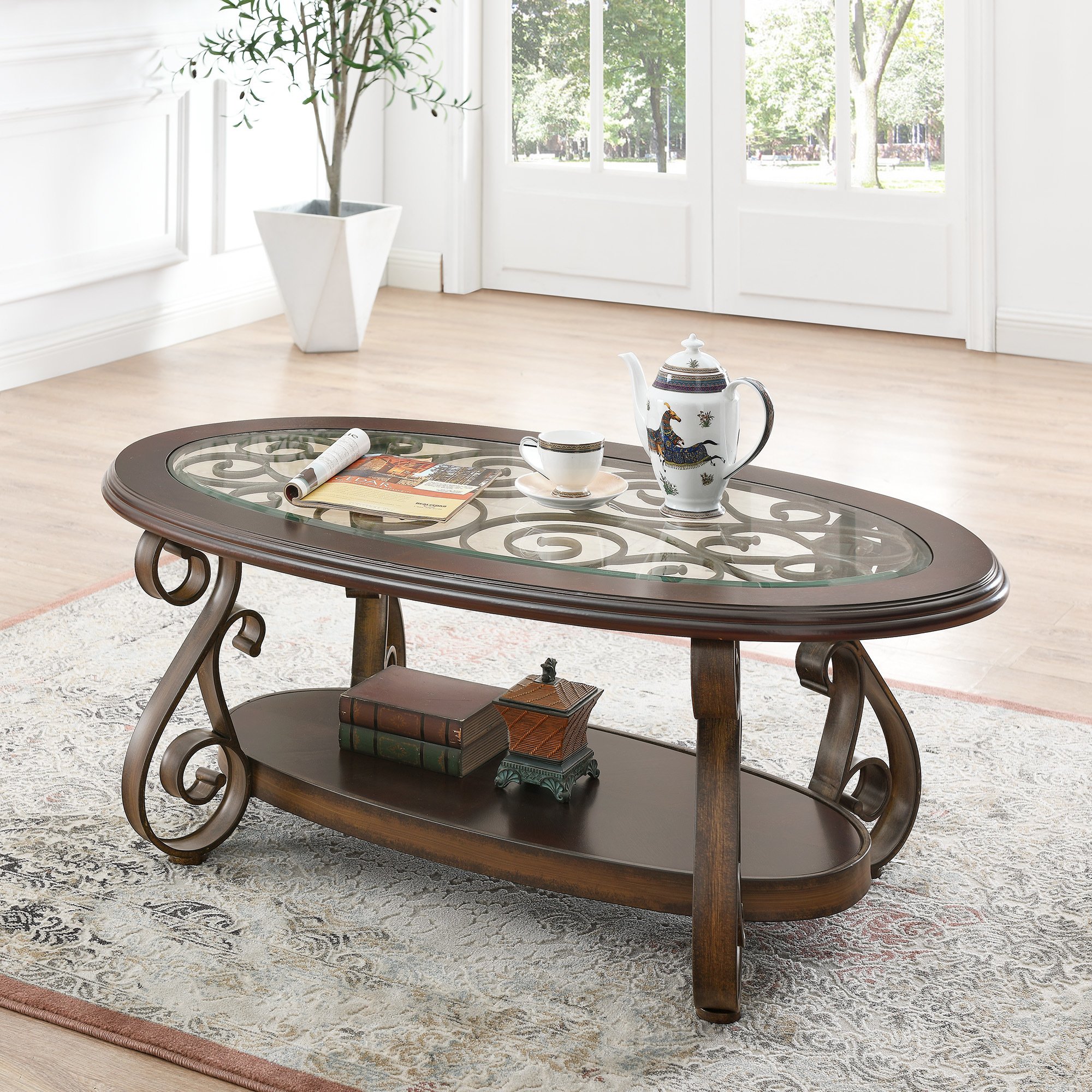 [INTEGRATE INTO YOUR FAMILY]: Blending classic and rustic elements, it brings elegant style to your living room and blending well with any home decor. The iron pattern under the glass makes the table more artistic.