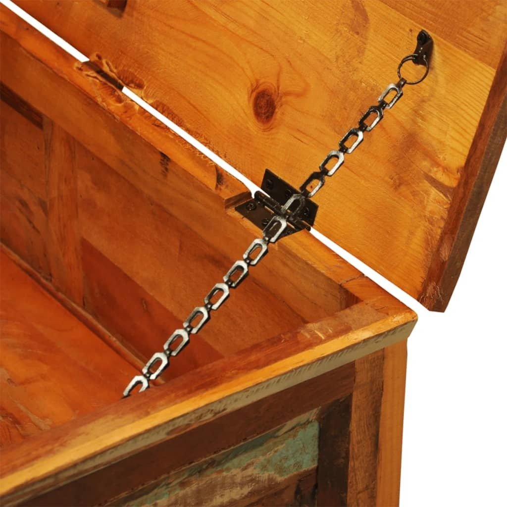 This antique-style wooden reclaimed coffee table, with a large compartment under the lid, is a timeless living accessory for your home. Whether you are looking for a coffee table to rest your food and drinks, or a box with storage function, this 2-in-1 table is the perfect choice for you.