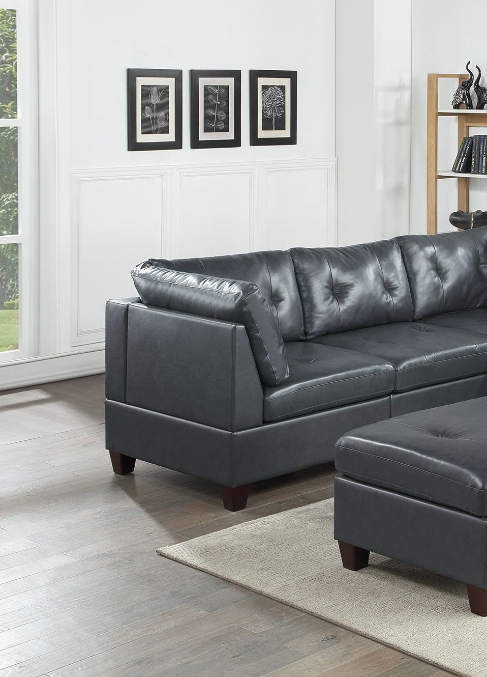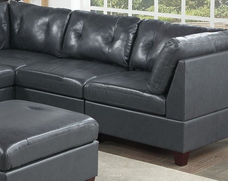 Home > Contemporary Genuine Leather Black Tufted 6pc Modular Sectional Set 3x Corner Wedge 2x Armless Chair 1x Ottoman Living Room Furniture Sofa Couch