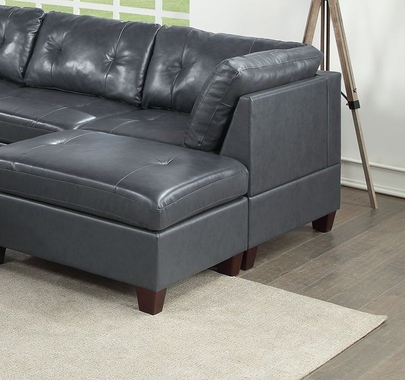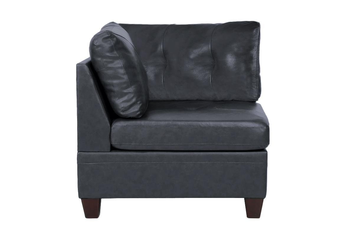 Home > Contemporary Genuine Leather Black Tufted 8pc Sectional Set 3x Corner Wedge 3x Armless Chair 2x Ottomans Living Room Furniture Sofa Couch