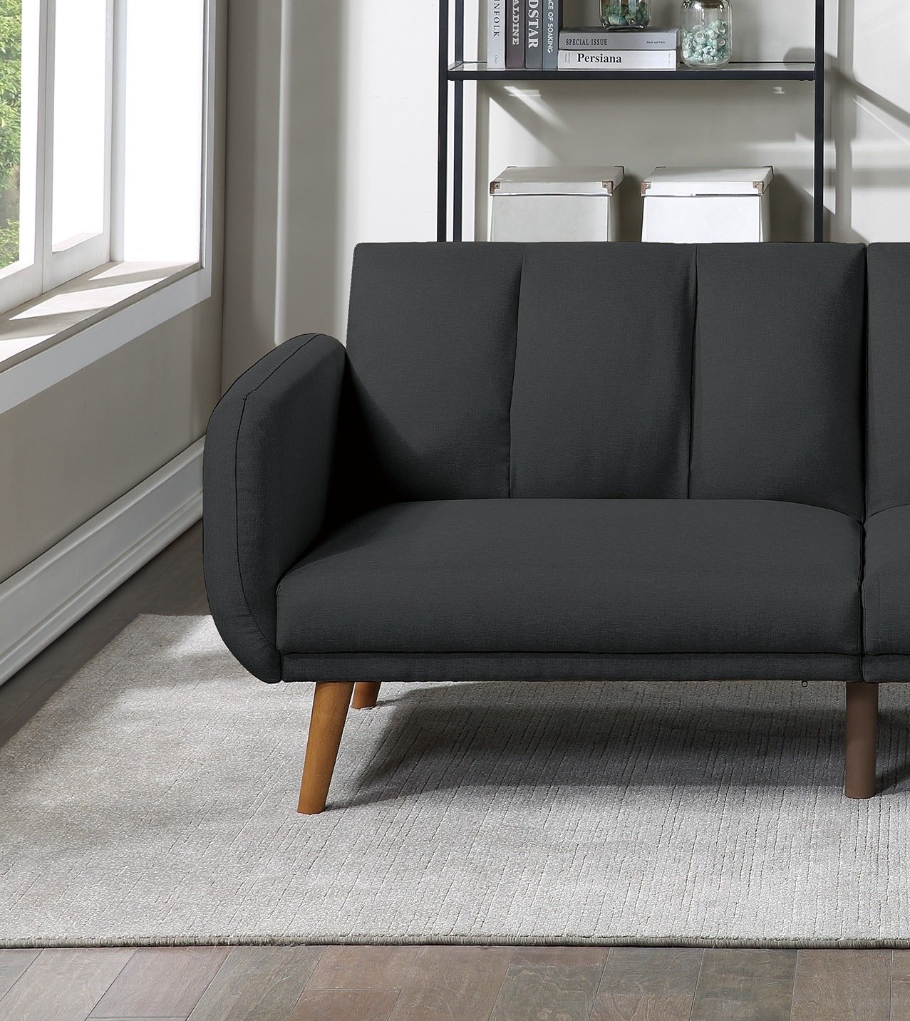 Elegant Modern Sofa Black Polyfiber 1pc Sofa Convertible Bed Wooden Legs Living Room Lounge Guest Furniture