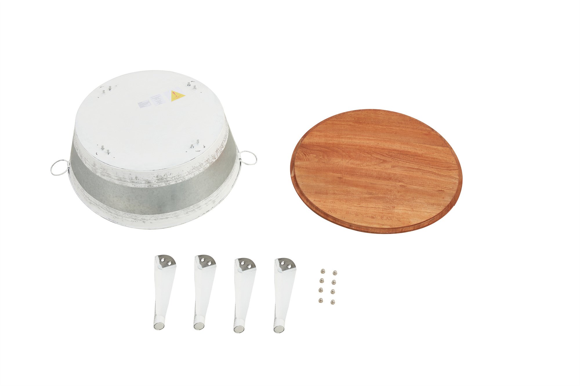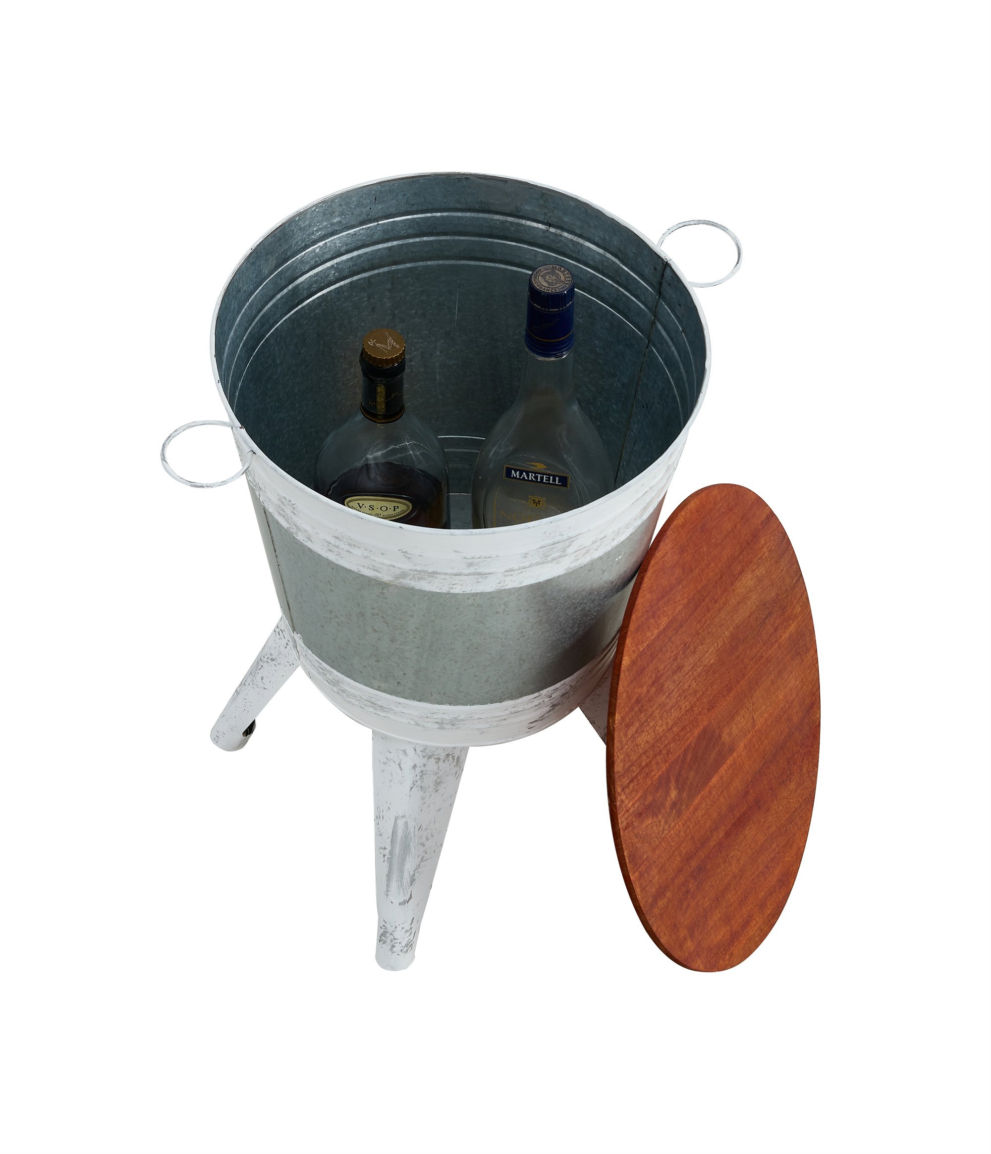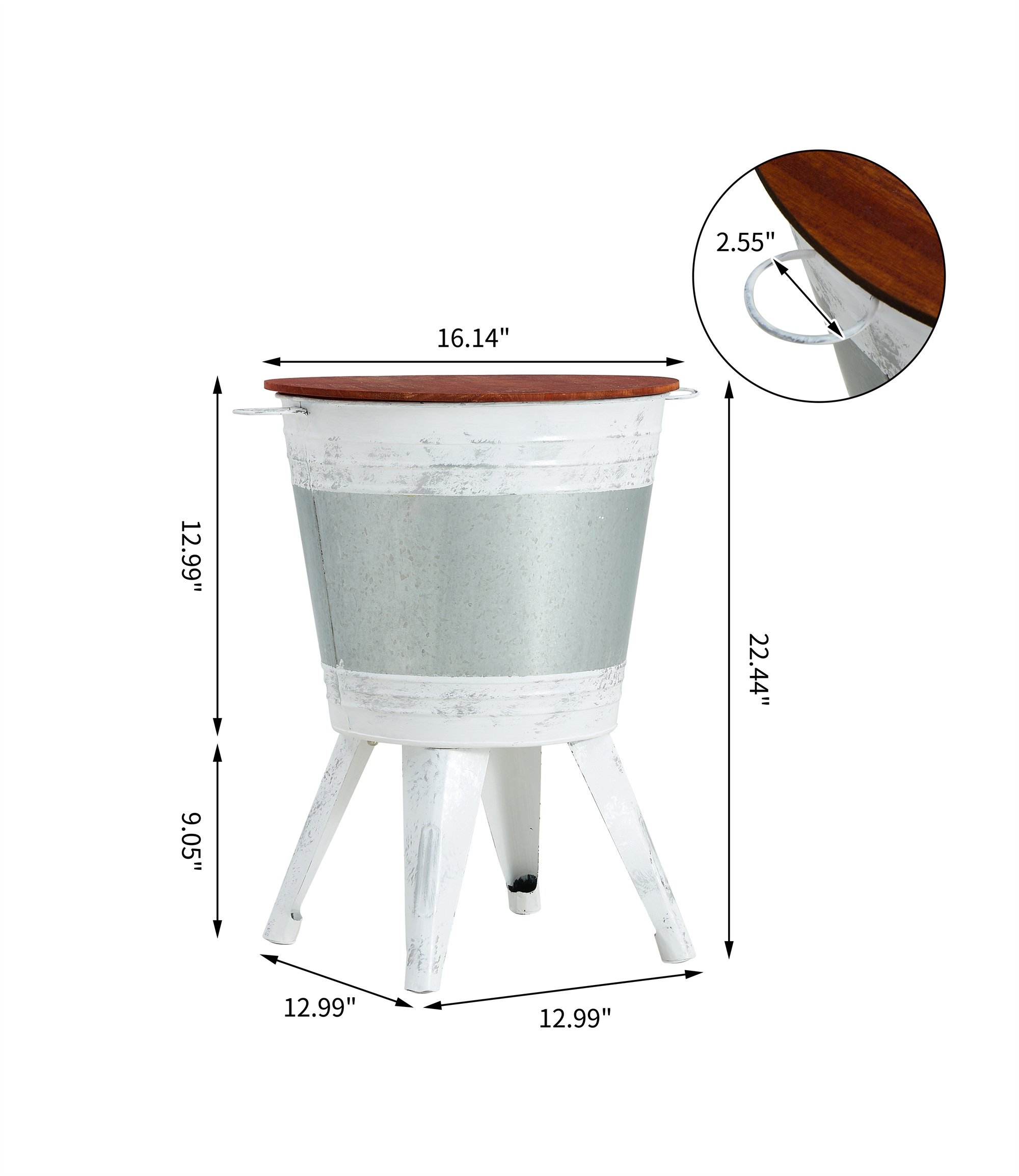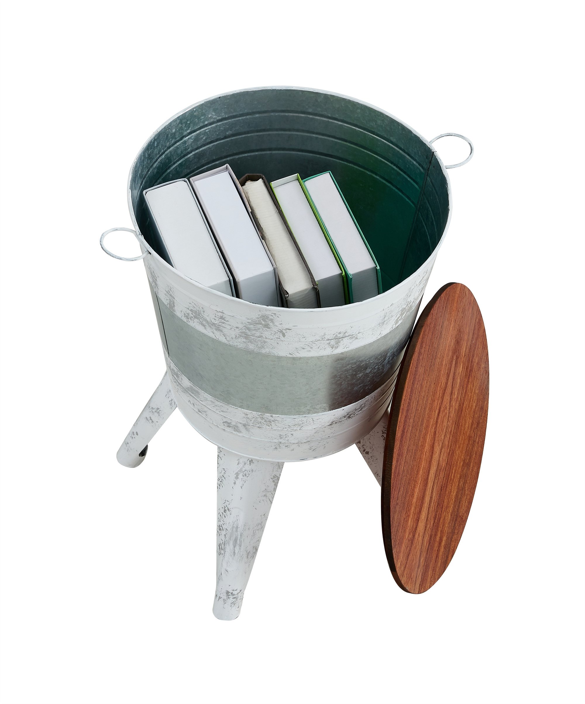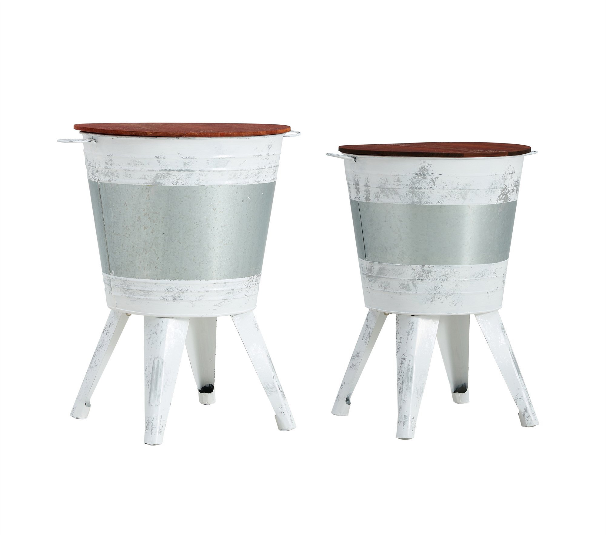 Set of Two -This farmhouse tub consists of a 2 piece set of galvanized steel storage binthat can also act as coffee or cocktail table or side table for a rusticappeal. 16.14*12.99*22.44 in (Largetable); 14.56*12.59*21.25 in (Small table)
