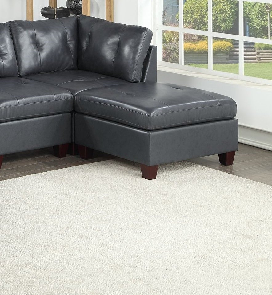 Home > Genuine Leather Black Tufted 6pc Sectional Set 2x Corner Wedge 2x Armless Chair 2x Ottomans Living Room Furniture Sofa Couch