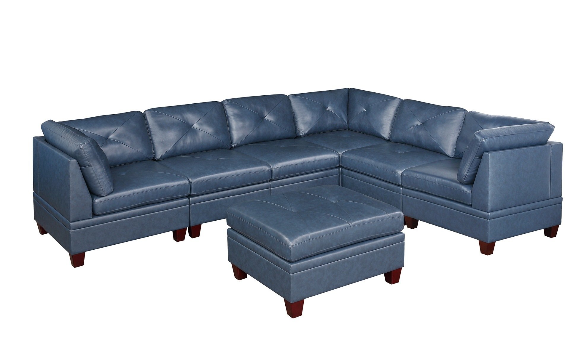 Home > Genuine Leather Ink Blue Tufted 6pc Sectional Set 3x Corner Wedge 3x Armless Chair Living Room Furniture Sofa Couch