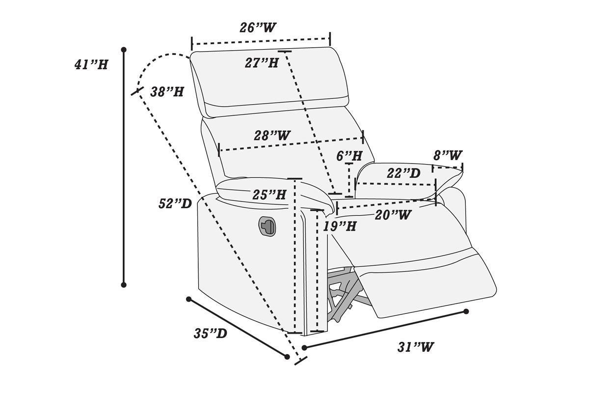 Recliner Chair - 31"W x 35"L x 41"HListing Include : 1pc Motion Recliner Chair Only.Recliner Sofa- Not Included.Product Features:-
