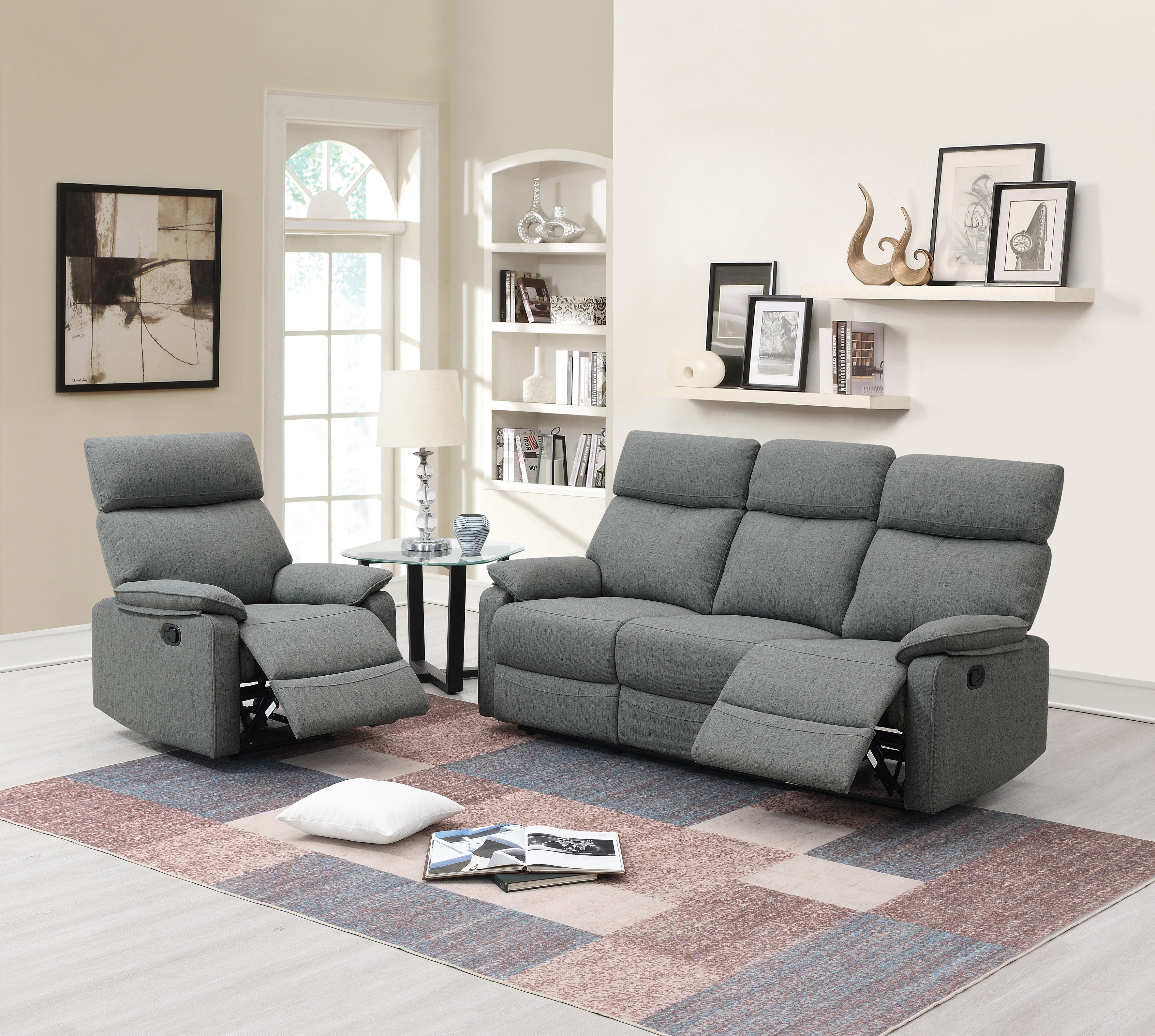 Modern StyleGray ColorBurlap FabricPadded ArmrestHigh Back ReclinersMotion Recliner Sofa Only.Simple Assembly requires.