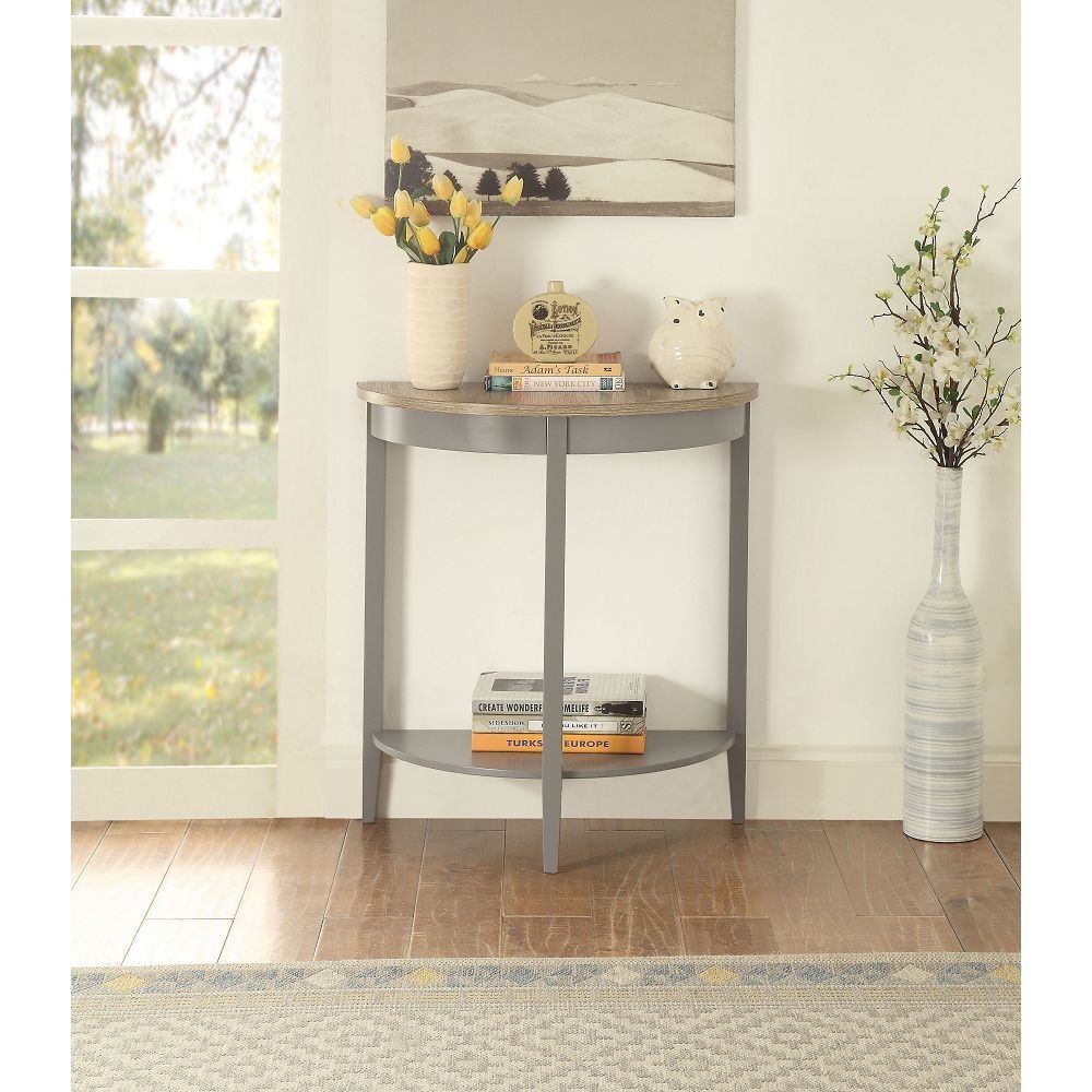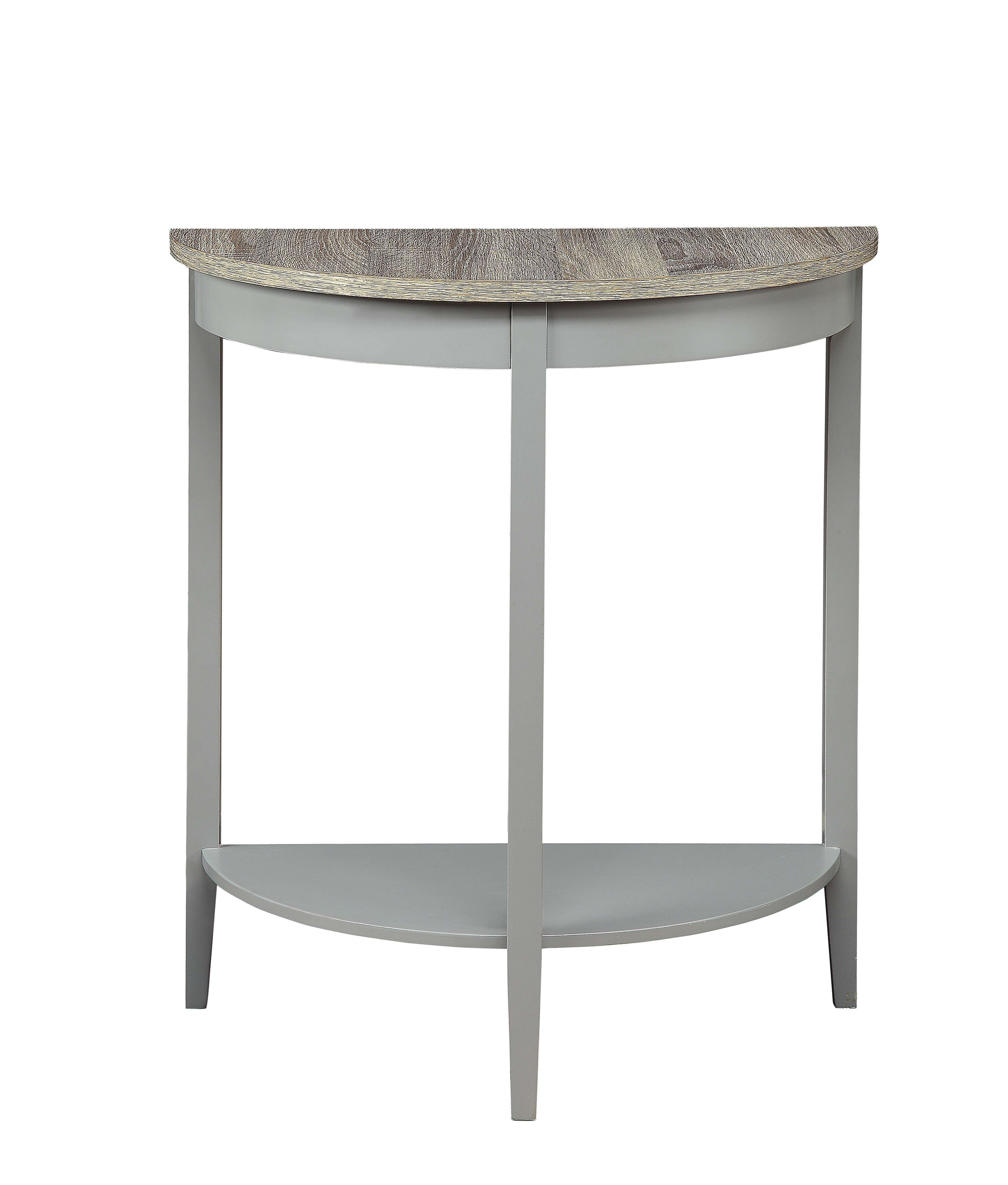 Romance : Give a touch of Transitional modish scheme to your home with this Justino console table. With its simple design; you can place it beside your entry doorway to add a welcoming sensation. Featuring a lower display shelf & wood grain pattern top this piece furthermore become a simple solution for storage. Bring home this console table to amaze your guests. With its elegant gray oak & gray finish; it will certainly complement any home Decor.