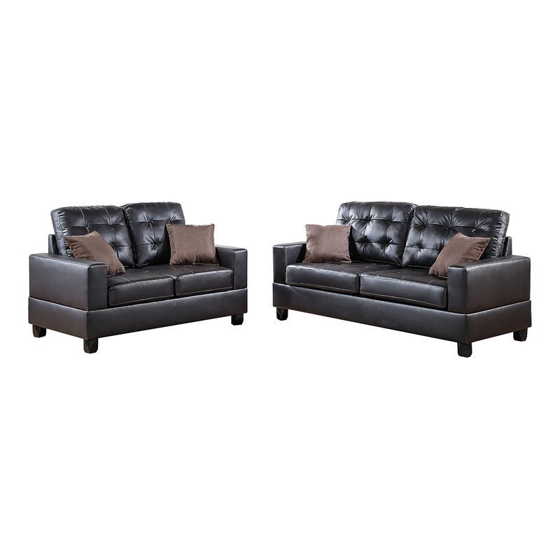 Believe in the possibilities of boldness with this 2-piece sofa set that includes a loveseat and a 2-seat sofa. Plush cushion, accent tufting and light stitching define this amazing seating space great for the modernly designed home. Available in faux leather black, beige and espresso, and grey (linen-like fabric).