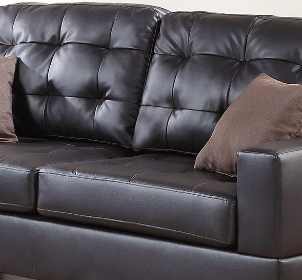 Living Room Furniture 2pc Sofa Set Espresso Faux Leather Tufted Sofa Loveseat w Pillows Cushion Couch