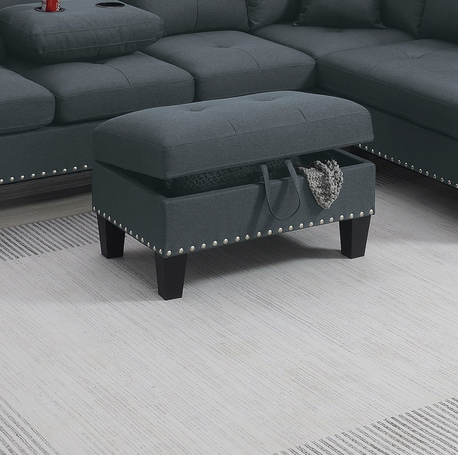 Description :-This sectional is everything you'd ever want in your living space; it comes in a neutral tone that matches almost any style or color scheme. With subtle tufting back cushions, medium-firm seat cushions, and nail head trim add the traditional feel we love.Product Dimensions :-LAF Sofa :- 67" x 30" x 34"HRAF Chaise :- 71" x 31" x 34"HStorage Ottoman :- 29" x 20" x 18"HOverall Sectional : 101" x 67" x 34"HListing Includes :- 3pcs Sectional Sofa Set (LAF Sofa, RAF Chaise And Storage Ottoman) Only.Assembly : Simple Assembly Required.Features:-•Modern / Contemporary•Charcoal Color•Linen-Like Fabric•RAF Chaise, LAF Sofa And Storage Ottoman•Pillows Included•Cup Holder•Nailhead Trim•Tufted Cushion Couch