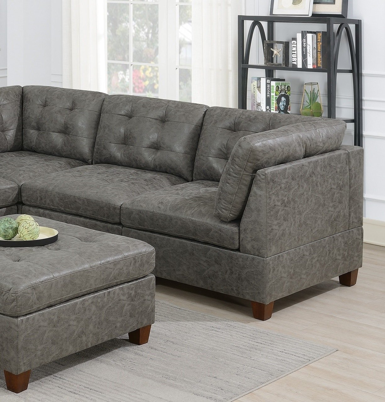 Home > Living Room Furniture Antique Grey Modular Sectional 6pc Set Breathable Leatherette Tufted Couch 3x Corner Wedge 2x Armless Chairs and 1x Ottoman