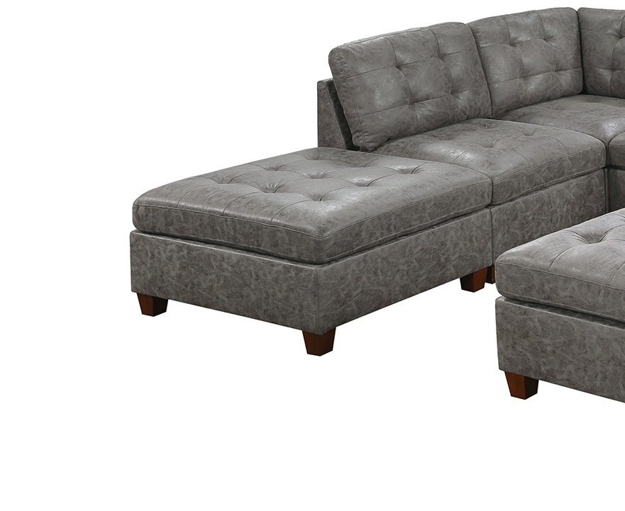 Living Room Furniture Antique Grey Modular Sectional 7pc Set Breathable Leatherette Tufted Couch 2x Corner Wedge 3x Armless Chairs and 2x Ottoman L-Sh