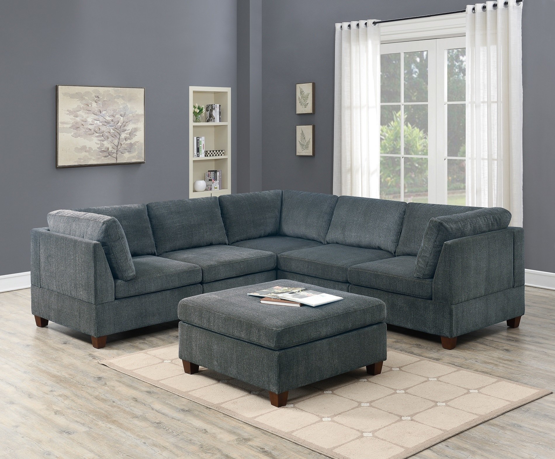 Home > Living Room Furniture Grey Chenille Modular Sectional 6pc Set Corner Sectional Modern Couch 3x Corner Wedge 2x Armless Chairs and 1x Ottoman Plywood