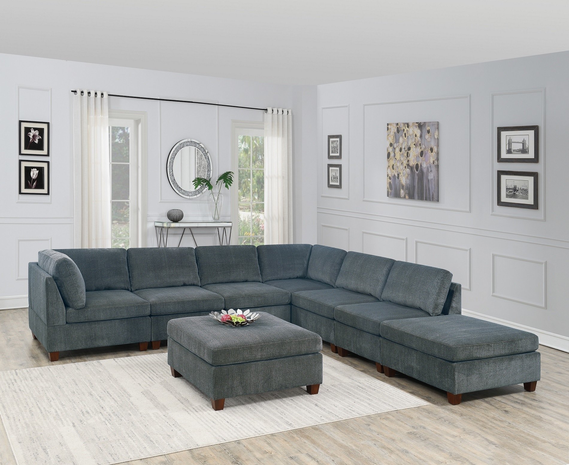 Home > Living Room Furniture Grey Chenille Modular Sectional 8pc Set Large Corner L-Sectional Modern Couch 2x Corner Wedge 4x Armless Chairs and 2x Ottomans