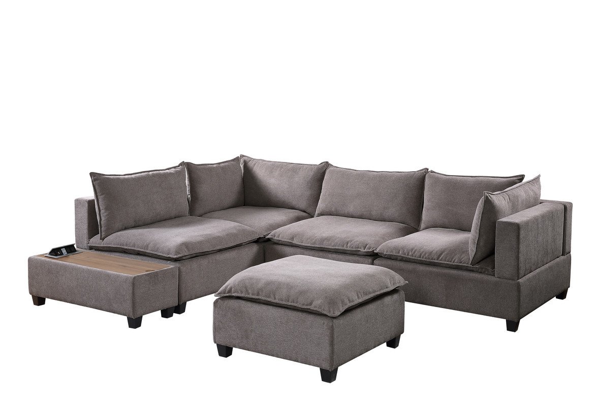 Includes 2 Single-Arm Chairs, 2 Armless Chairs, 1 Ottoman, and 1 Console Table