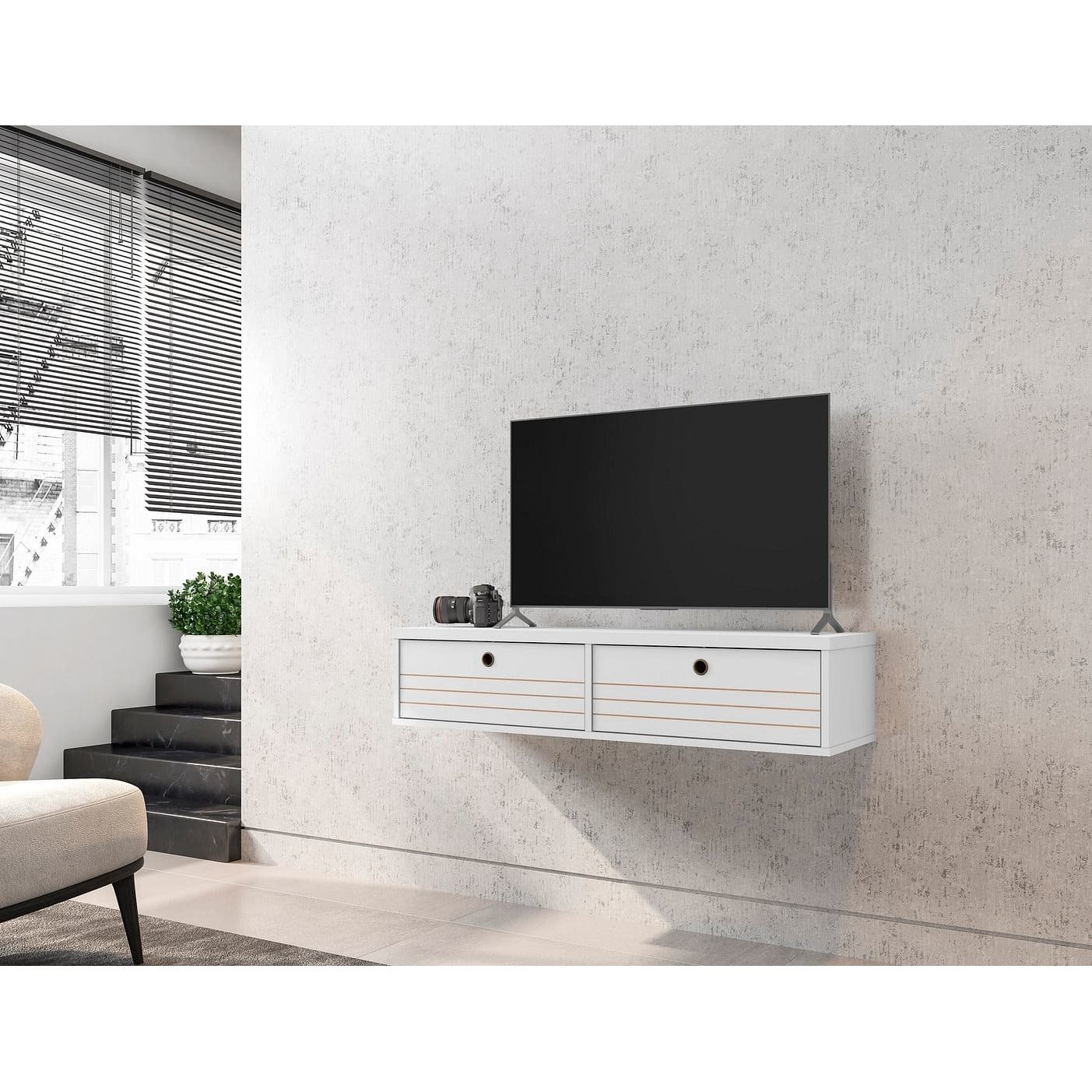 Manhattan Comfort Liberty 42.28 Mid-Century Modern Floating Entertainment Center with 2 Shelves in White