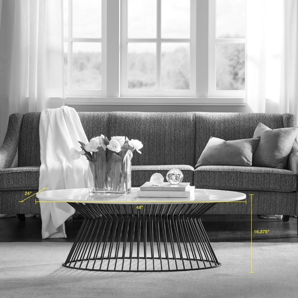 Black metal frame*White marble top*Assembly required