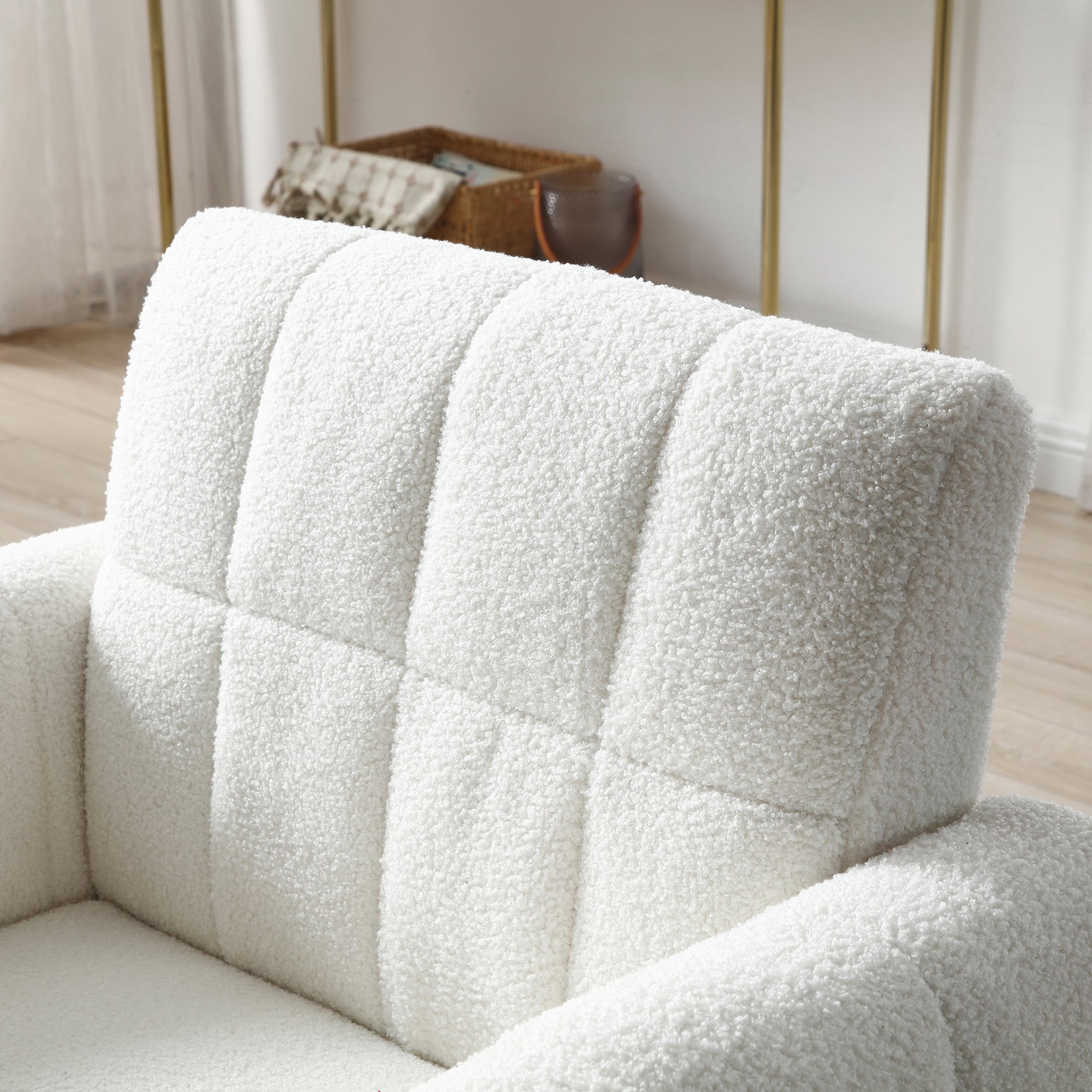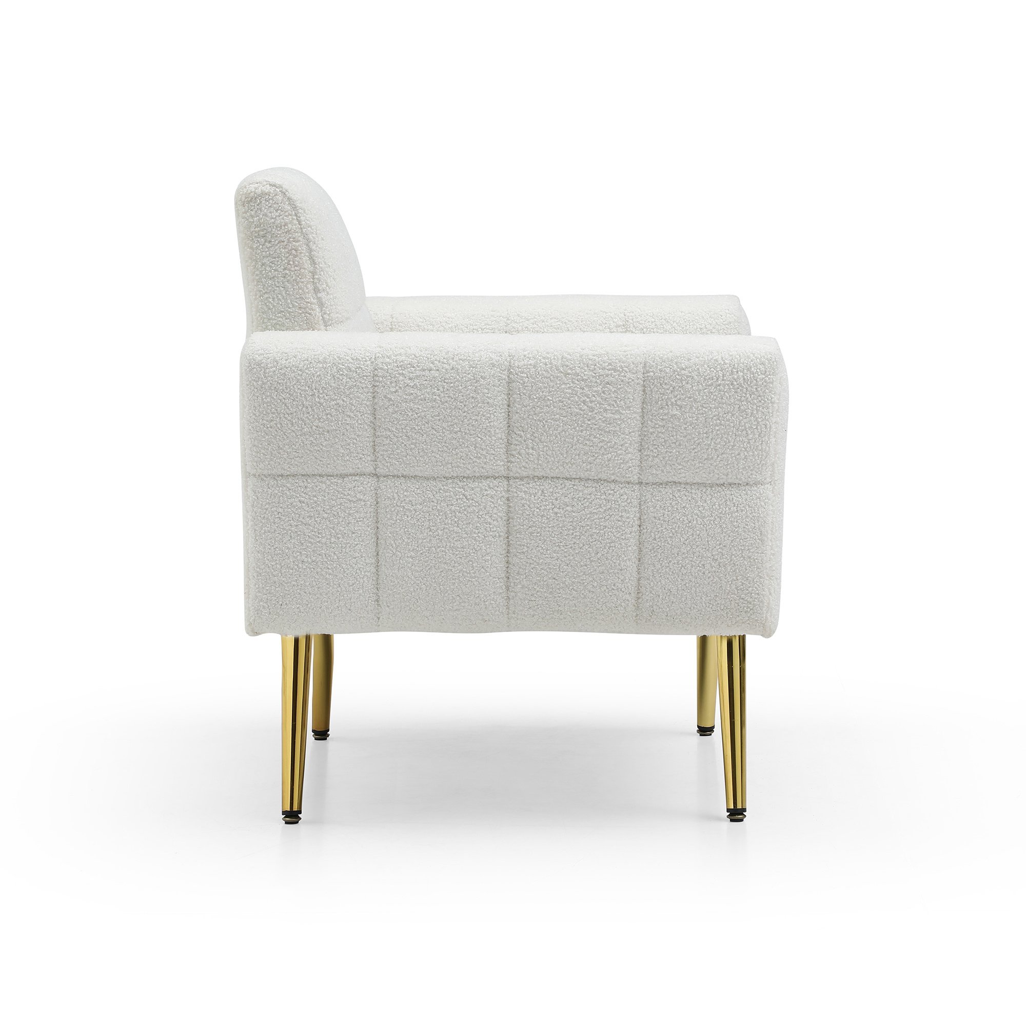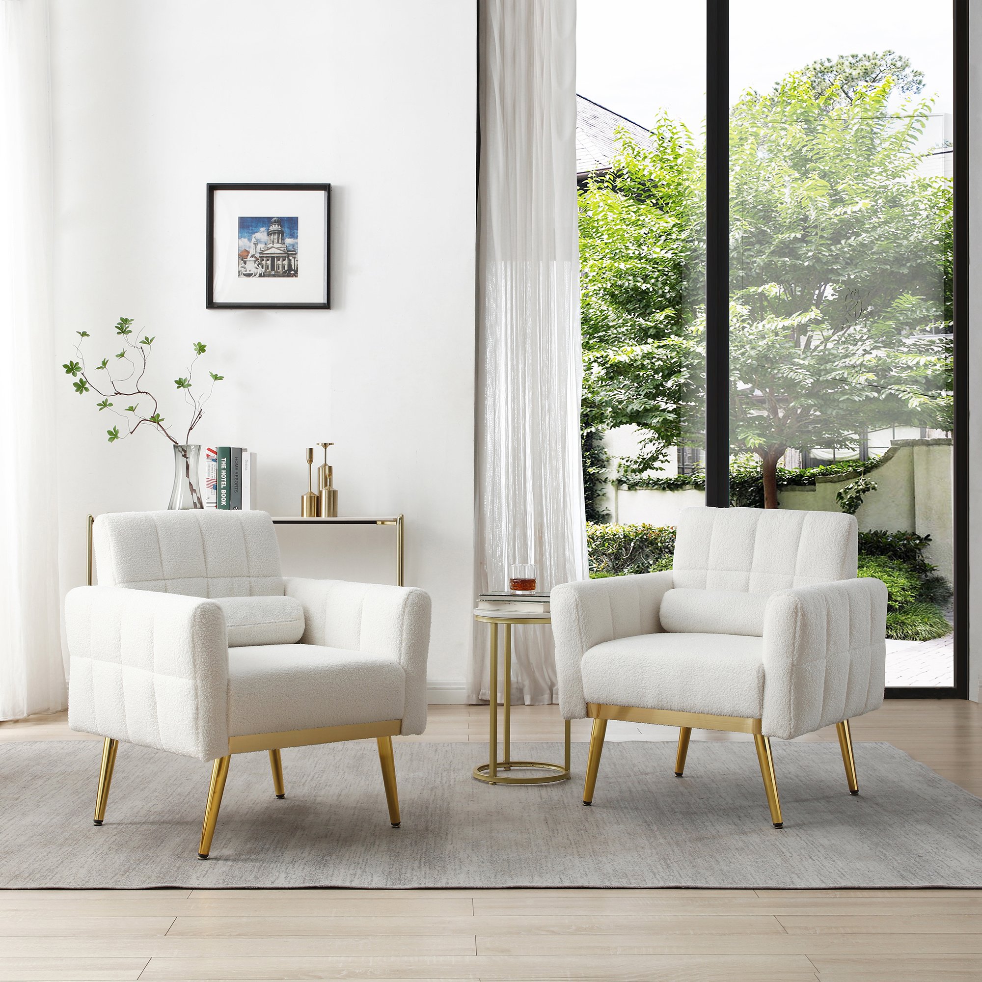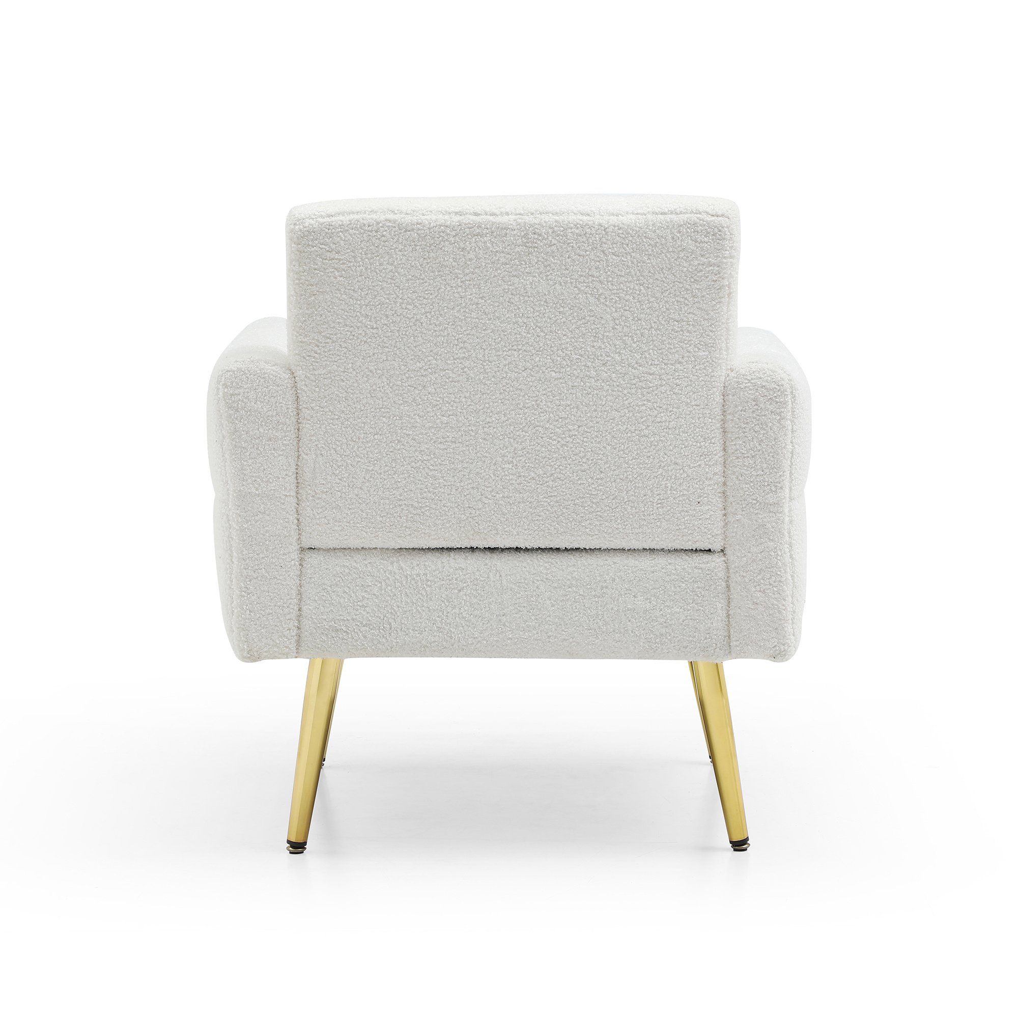 Home > Modern Comfy Blind Tufted White Teddy Fabric Accent Chair Leisure Chair Armchair Living Room Chairs With Metal Trim and Gold Legs, with 1 Waist Pillow
