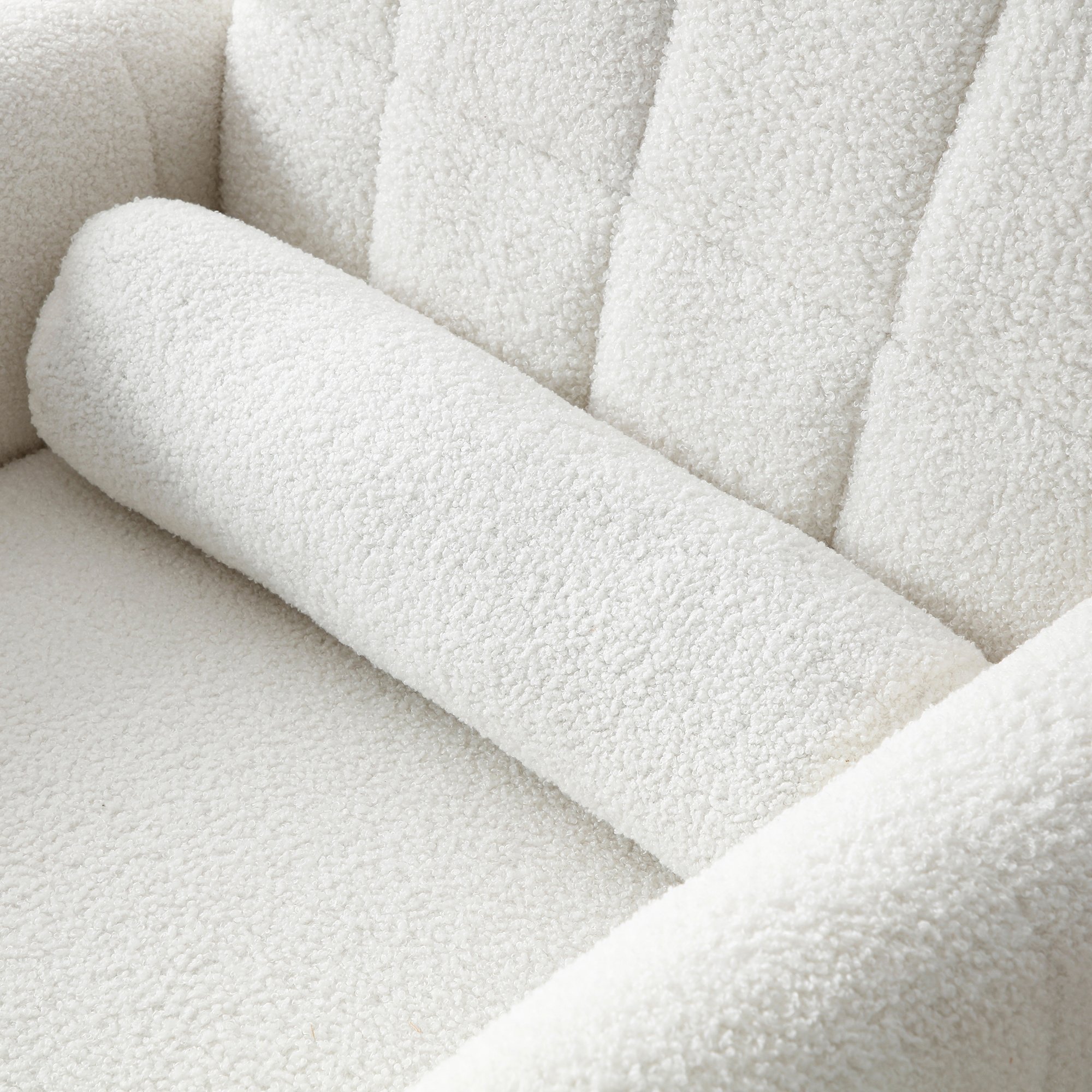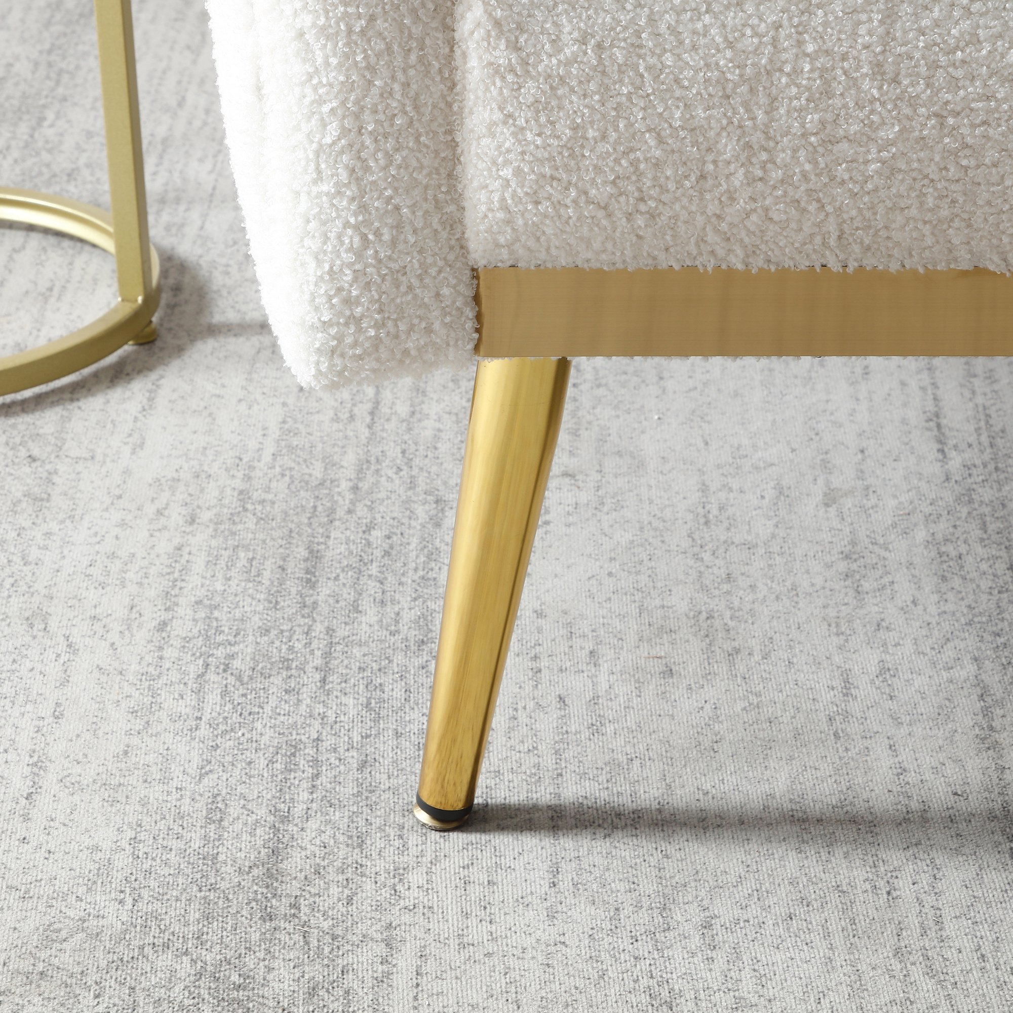 Modern Comfy Blind Tufted White Teddy Fabric Accent Chair Leisure Chair Armchair Living Room Chairs With Metal Trim and Gold Legs, with 1 Waist Pillow