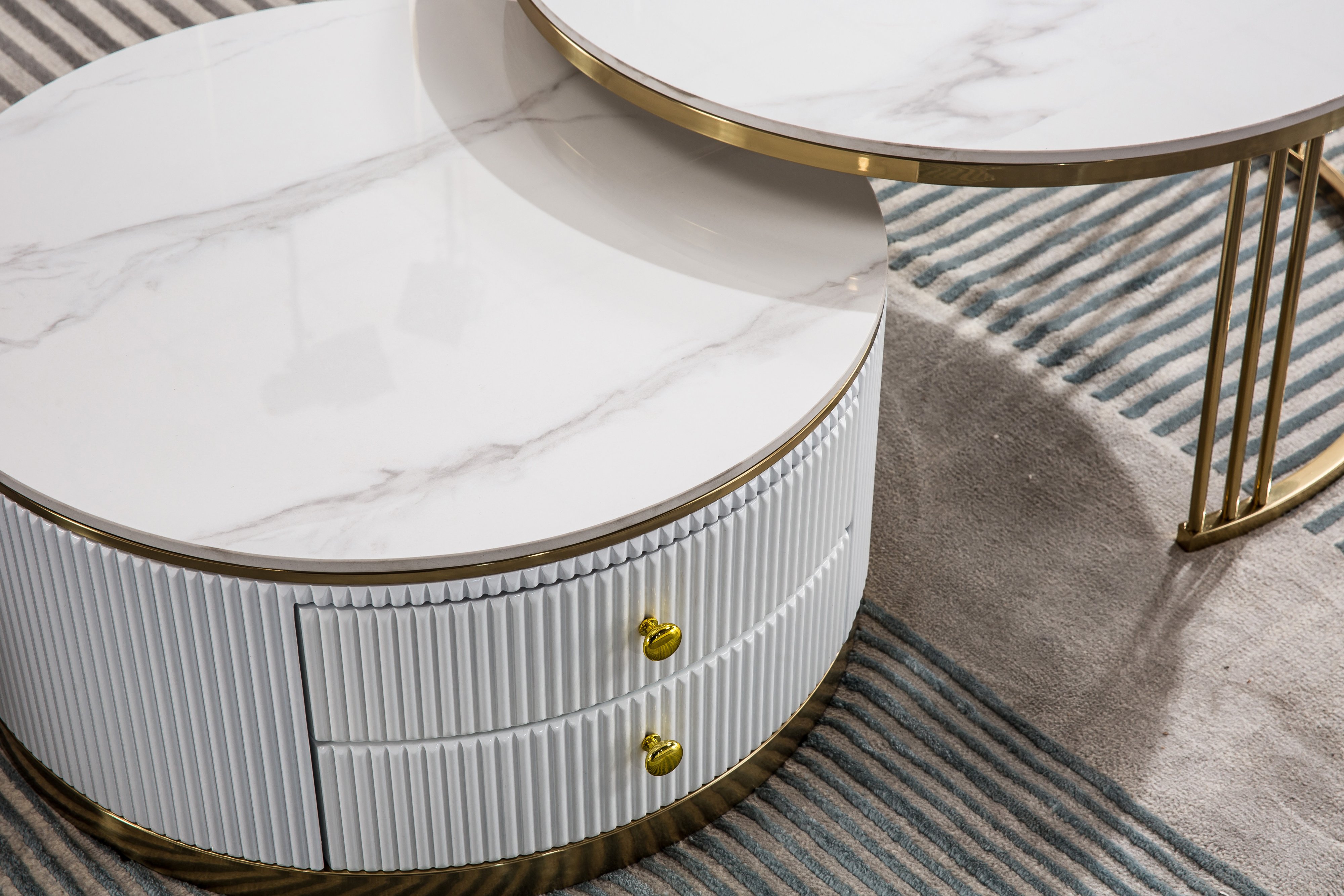 Modern Nesting MDF Coffee Table Set of 2, Round White End Table, Sintered Stone Appearance with Gold Finish Metal Base Modern Nesting MDF Coffee Table Set of 2, Round White End Table, Sintered Stone Appearance with Gold Finish Metal Base Modern Nesting MDF Coffee Table Set of 2, Round White End Table, Sintered Stone Appearance with Gold Finish Metal Base Modern Nesting MDF Coffee Table Set of 2, Round White End Table, Sintered Stone Appearance with Gold Finish Metal Base Modern Nesting MDF Coffee Table Set of 2, Round White End Table, Sintered Stone Appearance with Gold Finish Metal Base Modern Nesting MDF Coffee Table Set of 2, Round White End Table, Sintered Stone Appearance with Gold Finish Metal Base