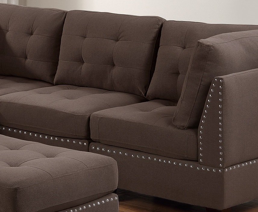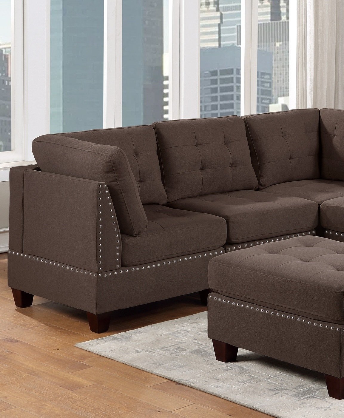 Home > Modular Sectional 6pc Set Living Room Furniture Corner Sectional Tufted Nail heads Couch Black Coffee Linen Like Fabric 3x Corner Wedge 2x Armless Cha